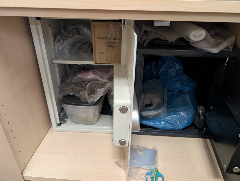 Policjanci udali się pod ustalony adres. Na miejscu zastali 30-letniego obywatela Iraku. W trakcie przeszukania mieszkania w dwóch sejfach umieszczonych w szafce meblowej policjanci znaleźli częściowo poporcjowane różnego rodzaju narkotyki i substancje psychotropowe, w sumie ponad 3,2 kilograma.