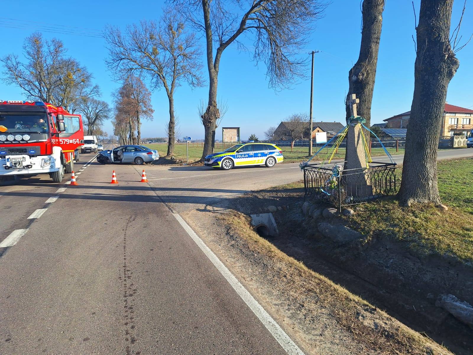 Groźny wypadek w Psucinie. Samochód z impetem uderzył w drzewo – jedna osoba trafiła do szpitala