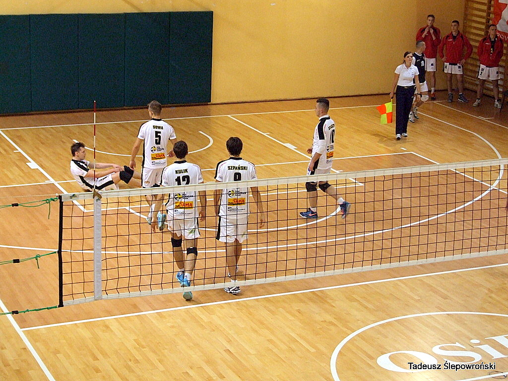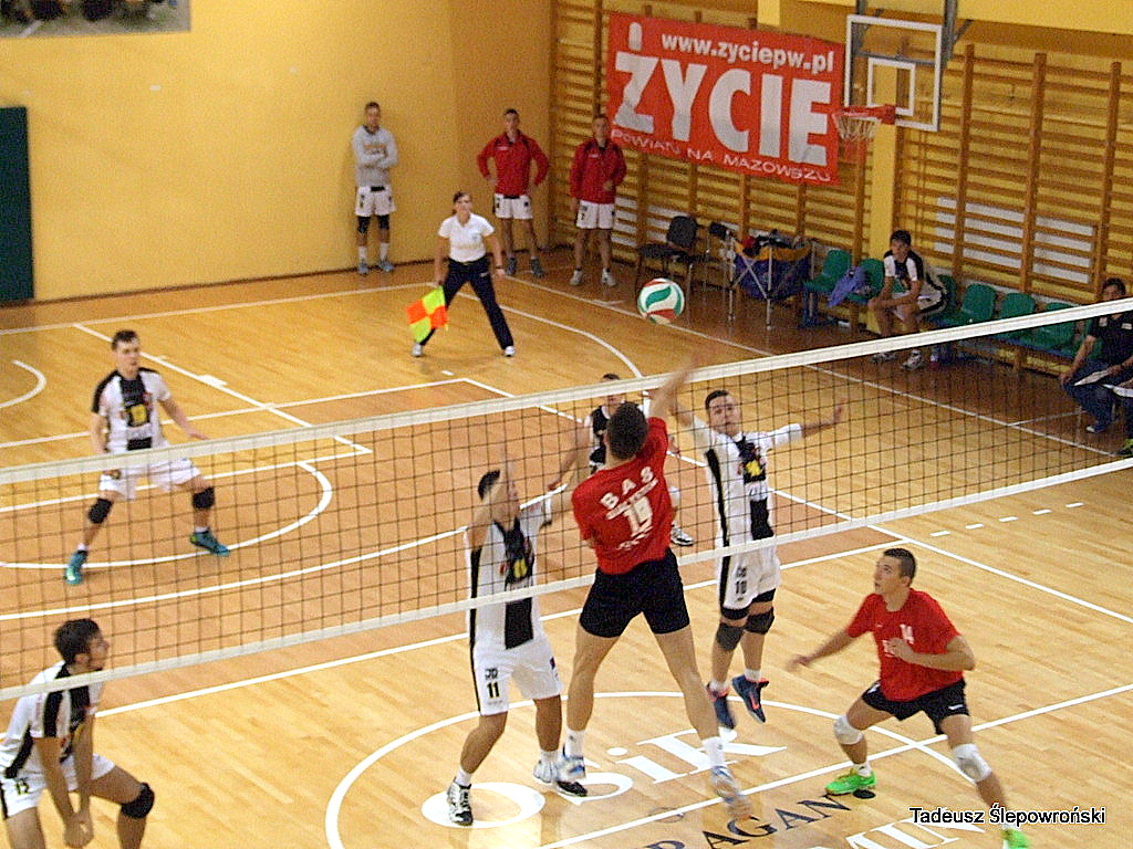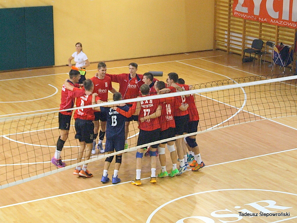 Wynik otworzyli gospodarze. W początkowej fazie pierwszego seta zaczęła jednak niepokojąco rosnąć przewaga gości, która utrzymywała się cały czas na poziomie kilku punktów. Najbliżej przełamania wołominianie znaleźli się w chwili, kiedy zbliżyli się do zespołu z Białegostoku na (20:22). W tym momencie nasz zawodnik atakował w aut i dystans do BAS ponownie zaczął rosnąć. Ostatecznie set zakończył się wynikiem (21:25).