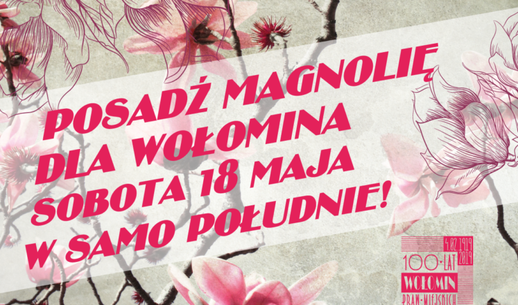 W sobotę 18 maja o godzinie 12:00 (w ?samo południe?) mieszkańcy Wołomina posadzą na terenie miasta i gminy 100 drzewek magnolii by uczcić 100-lecie nadania praw Miejskich Wołominowi.