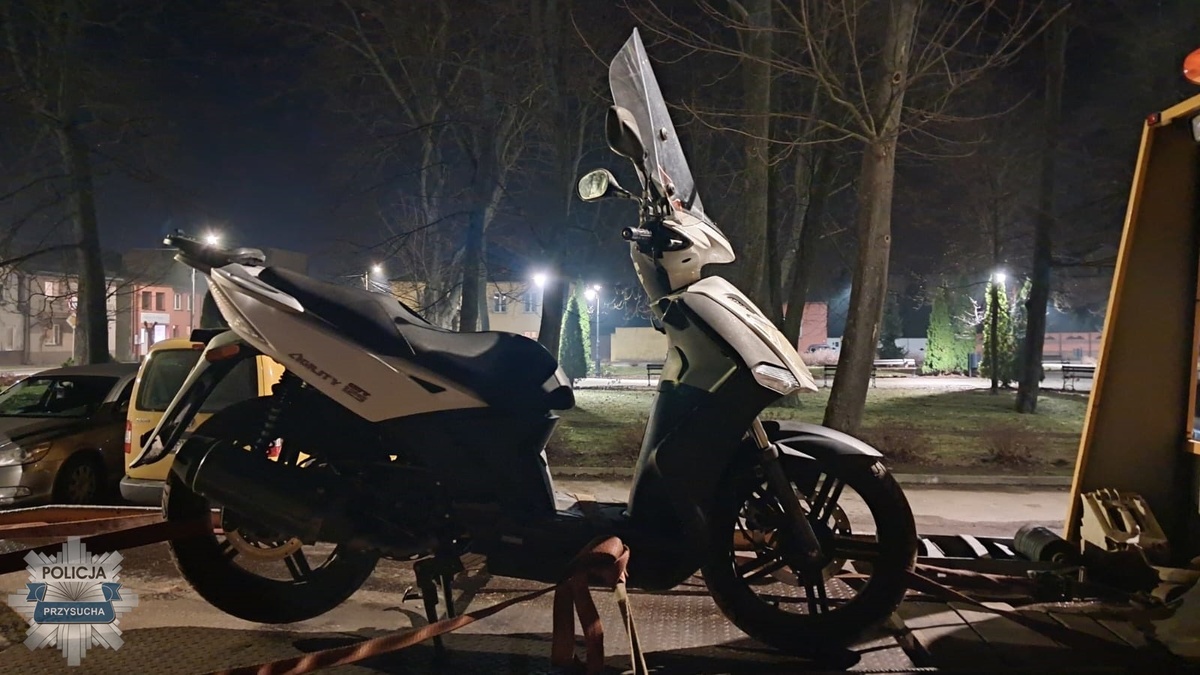 Okazało się, że kierujący to 35-letni mieszkaniec powiatu przysuskiego. W trakcie dalszych czynności policjanci ustalili, że motocykl marki Kymco Agility, którym się poruszał, posiadał tablice rejestracyjne przypisane do innego pojazdu. Ponadto mężczyzna nie posiadał uprawnień do kierowania pojazdami. 35-latek przyznał, że uciekał, ponieważ jego pojazd nie był zarejestrowany, a on sam nie posiadał prawa jazdy. Oświadczył również, że tablice rejestracyjne znalazł w kompleksie leśnym i zamontował je na swoim motocyklu. Pojazd został zabezpieczony i odholowany na parking strzeżony, a po wykonaniu oględzin przekazany właścicielowi. Policjanci zabezpieczyli także tablice rejestracyjne oraz sporządzili dokumentację do Ubezpieczeniowego Funduszu Gwarancyjnego.