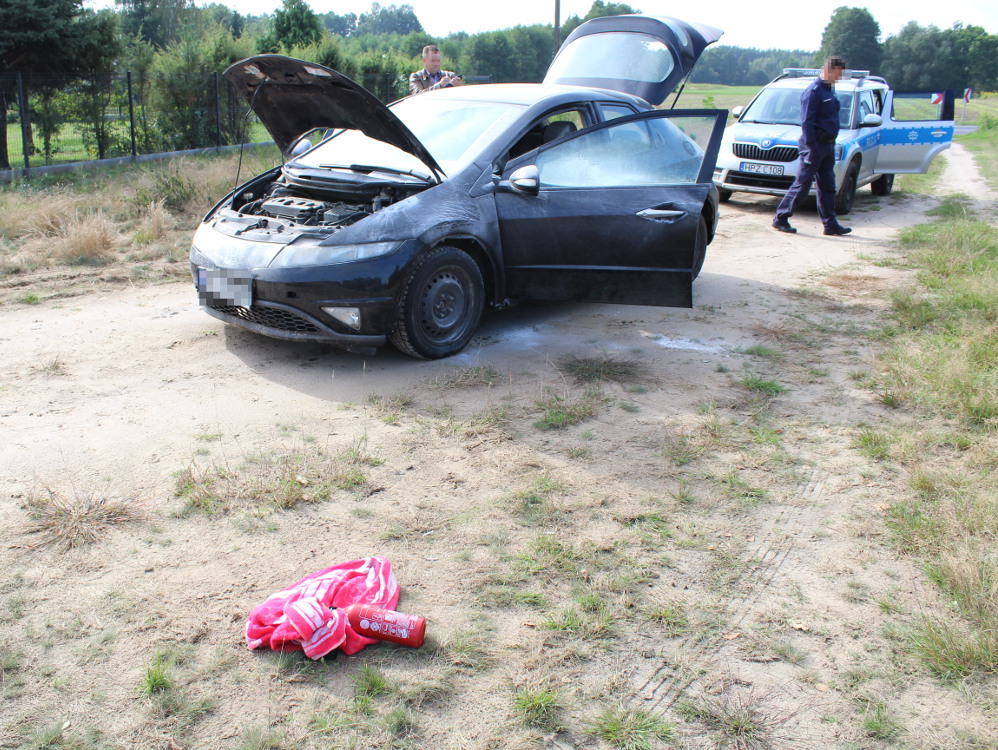 Po kilkuminutowym pościgu kierujący hondą zatrzymał pojazd, wysiadł z niego, odbezpieczył gaśnicę samochodową, którą wrzucił do środka, po czym zaczął uciekać pieszo. Po chwili 34-latek był już w rękach policjantów. Badanie stanu trzeźwości wykazało u niego prawie 1,1 promila alkoholu. Funkcjonariusze sprawdzili pojazd, którym mężczyzna się poruszał. Jak się okazało, tablice przypisane były do innego samochodu, honda figurowała w policyjnej bazie jako skradziona 26 sierpnia na terenie warszawskiego Żoliborza.