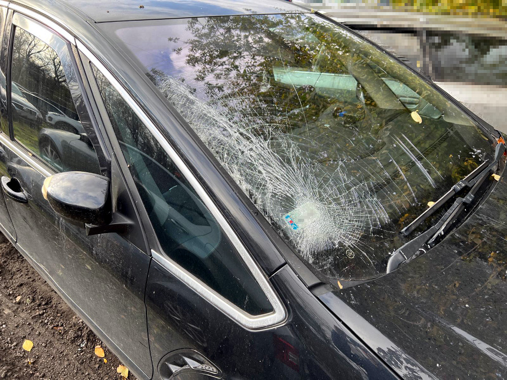 Samochód, którym spowodował kolizję, trafił na policyjny parking, gdzie został poddany oględzinom. Miał widoczne uszkodzenia, które jednoznacznie wskazywały, że brał udział w zdarzeniu drogowym: rozbitą szybę czołową oraz zarysowania na zderzaku i masce.