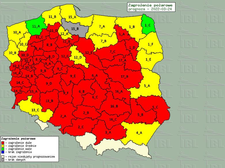 Od kilku dni są notowane coraz wyższe temperatury powietrza. Tym samym wzrasta zagrożenie pożarowe w lasach. Leśnicy coraz częściej informują o pożarach wybuchających w lasach. Jednostki organizacyjne Lasów Państwowych codziennie określają stopnie zagrożenia pożarowego lasu dla 60 stref prognostycznych.