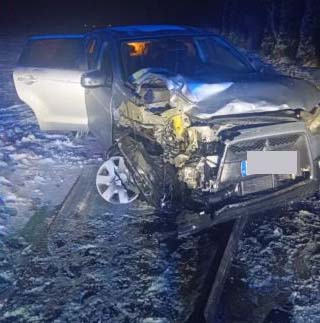 Ze wstępnych ustaleń policjantów wynika, że 50-letnia mieszkanka Ostrołęki, kierując Toyotą, straciła panowanie nad pojazdem na śliskiej nawierzchni. Auto wpadło w poślizg i bokiem uderzyło w nadjeżdżające z przeciwnego kierunku Mitsubishi, którym kierowała inna kobieta.