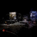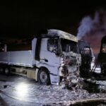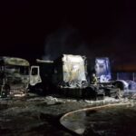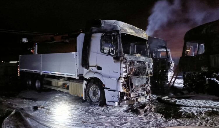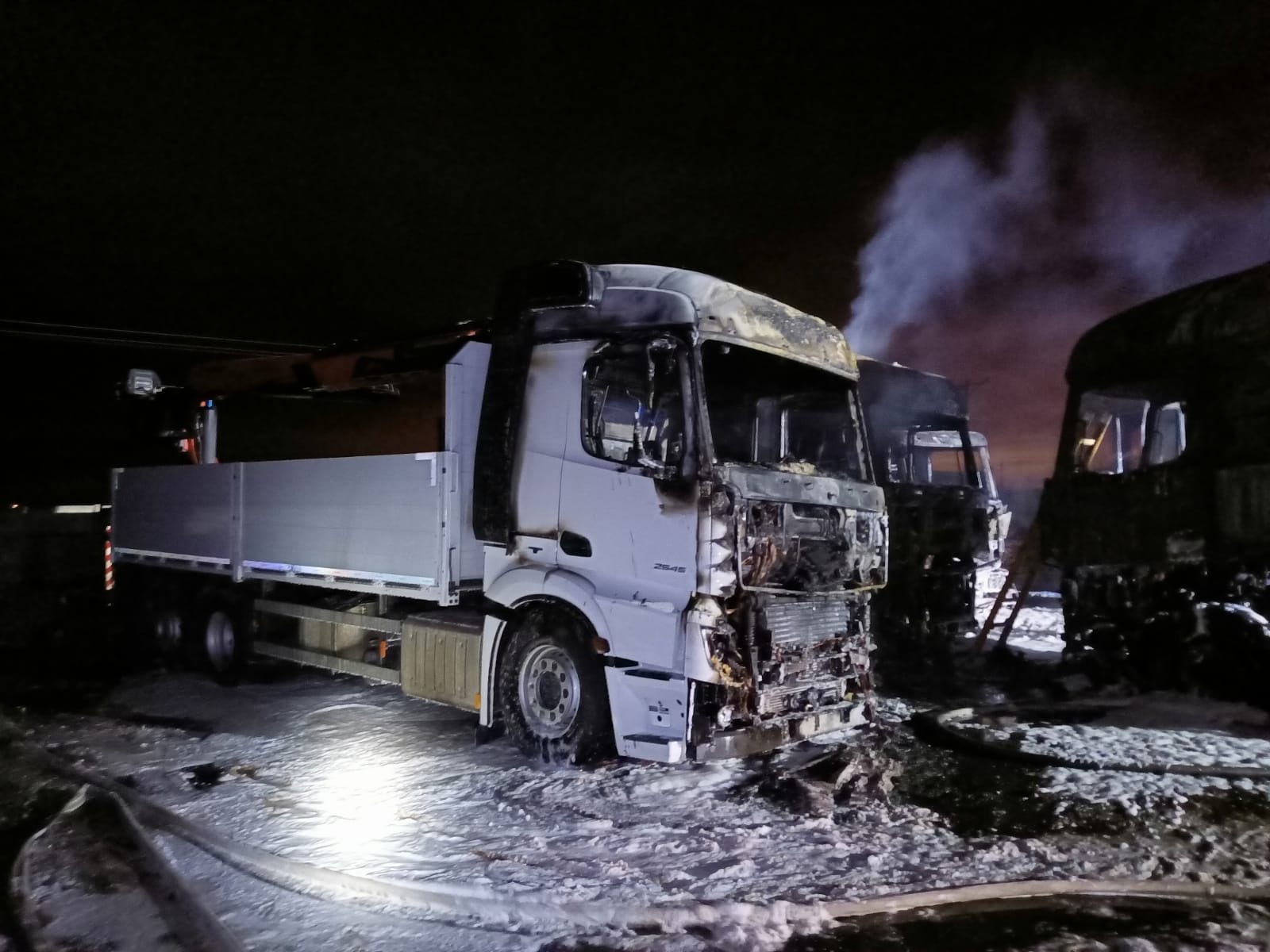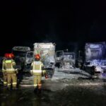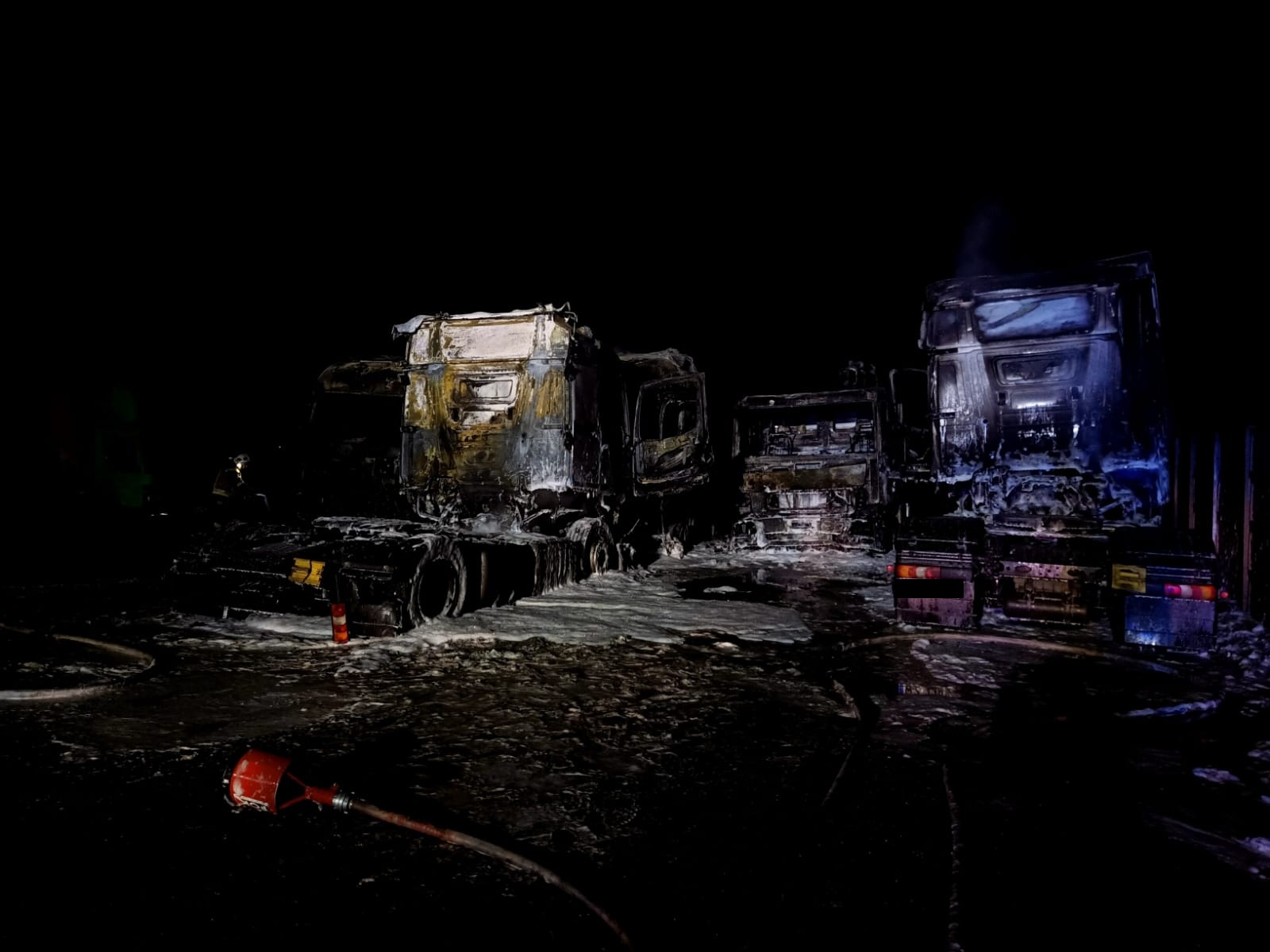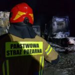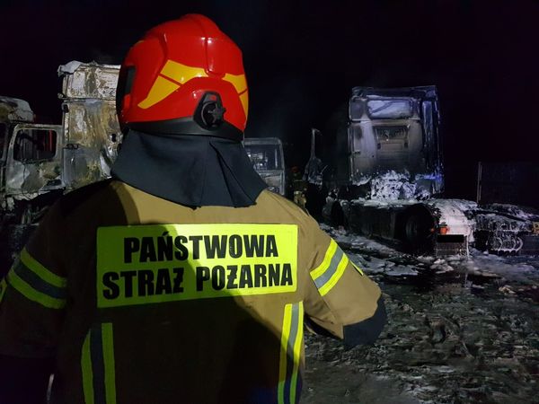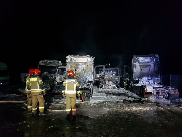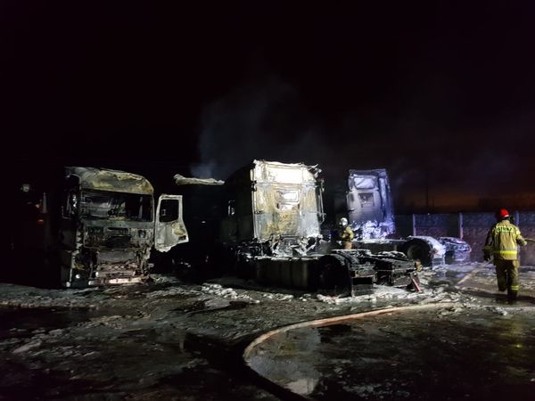 Pożar miał powstać na terenie warsztatu samochodów ciężarowych, a ogień miał obejmować już kilka ciągników siodłowych. Na miejscu zastaliśmy pracujące już zastępy z OSP, ostatecznie zniszczeniu uległo sześć samochodów ciężarowych, niestety kilka z nich spłonęło doszczętnie. Oprócz naszych zastępów w działaniach brały udział OSP w Starych Babicach, OSP w Ożarowie Mazowieckim, OSP w Borzęcinie Dużym oraz załoga Policji – informuje JRG Błonie.