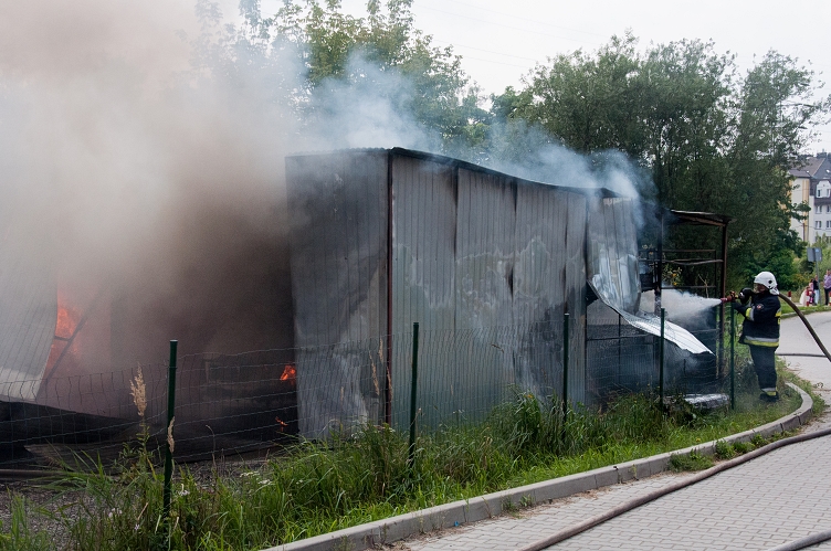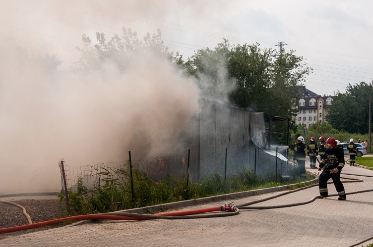 Na miejscu były składowane gazy techniczne w tym acetylen. Istnieje zagrożenie wybuchem, dlatego strażacy natarcie koncentrują na chłodzenie butli, ponieważ garaż znajduje się w bezpośredniej odległości od budynków zamieszkania zbiorowego.