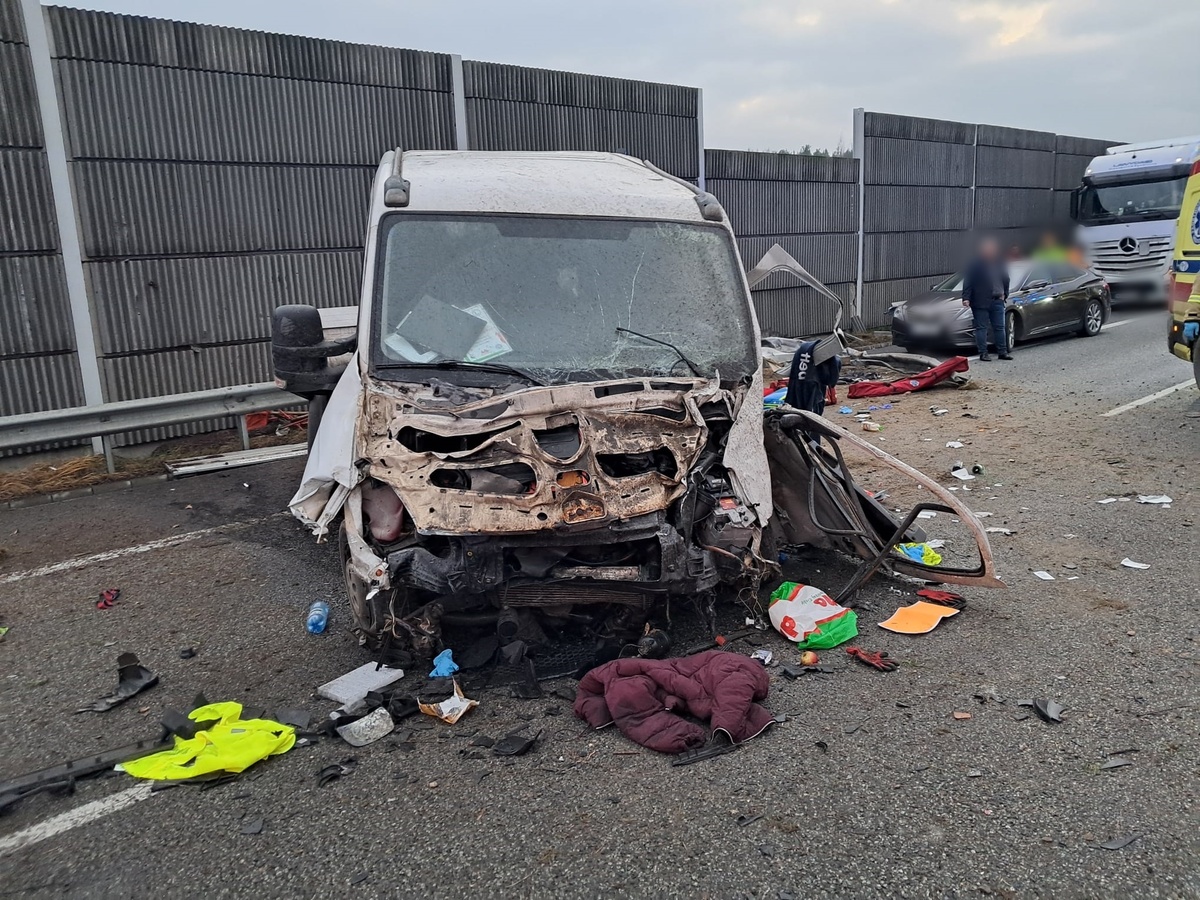 Jak wstępnie ustalili policjanci pracujący na miejscu zdarzenia, 39-letni kierujący iveco z nieustalonych dotychczas przyczyn uderzył w bariery energochłonne oraz ekrany dźwiękochłonne. Kierowca oraz czworo pasażerów doznali obrażeń ciała i zostali przetransportowani do szpitali. Trzy osoby odniosły poważne obrażenia.