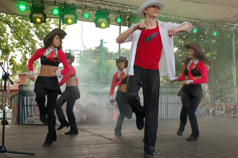 Artyści ubrani w tradycyjne staropolskie stroje rozpoczęli swój występ od poloneza zatańczonego wraz zWystępy widownią. Później były inne polskie tańce takie, jak: oberek, kujawiak i mazur. W takcie imprezy odbywały się również konkursy: plecenie warkoczy, nawlekanie korali, strzelanie z batów oraz zabawa z lajkonikiem. Jedną z atrakcji był korowód nad pobliską rzekę ?Długą”, gdzie, zgodnie ze starymi zwyczajami, puszczano wianki.
