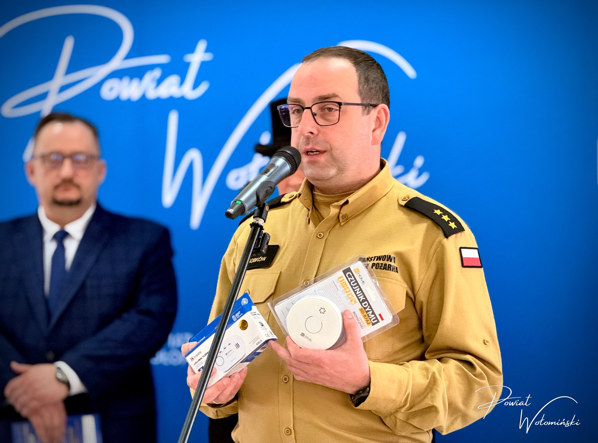 Podczas konferencji zapowiedziano konkretne działania prowadzone wspólnie z Państwową Strażą Pożarną. Do każdej gminy na terenie powiatu mają trafić czujki dymu i tlenku węgla przeznaczone dla najbardziej potrzebujących mieszkańców. Dodatkowe urządzenia przekaże również Starostwo Powiatowe, kierując je do rodzin, które najbardziej potrzebują takiego wsparcia. To praktyczny wymiar kampanii, która ma nie tylko przypominać o obowiązkach, ale również realnie zwiększać poziom bezpieczeństwa w domach.