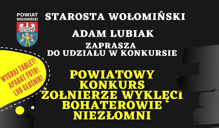 W związku ze zbliżającą się rocznicą upamiętniającą Żołnierzy Wyklętych, Adam Lubiak – Starosta Wołomiński serdecznie zaprasza uczniów ze szkół podstawowych i ponadpodstawowych do udziału w powiatowym konkursie „Żołnierze Wyklęci – Bohaterowie Niezłomni”.