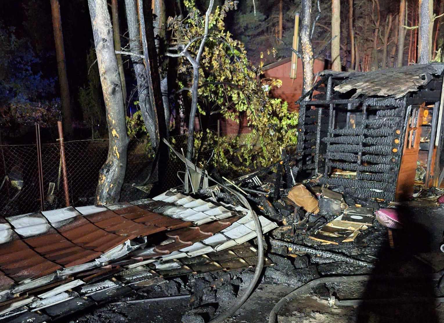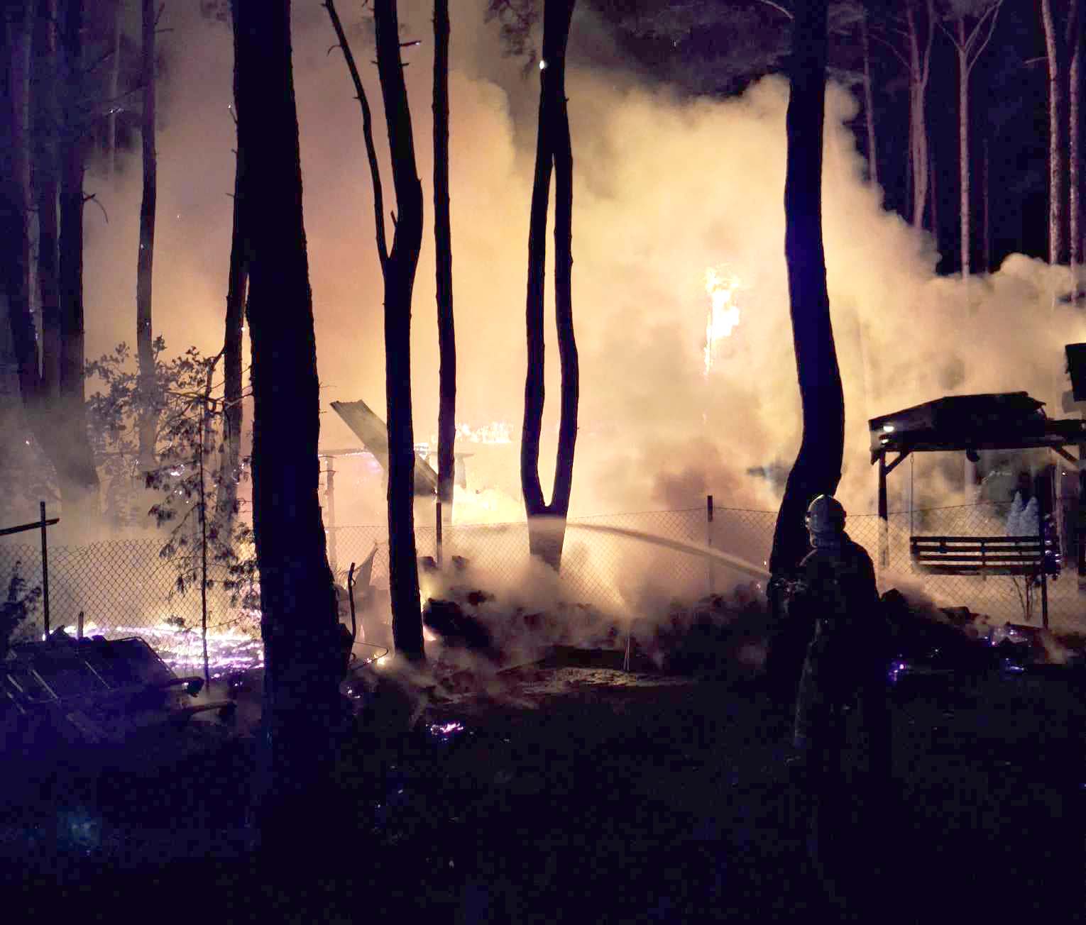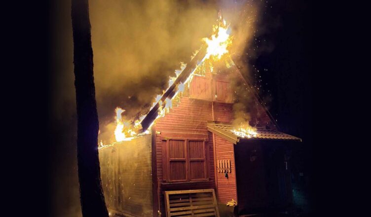 – Po godzinie 2 w nocy do Stanowiska Kierowania KP PSP w Wołominie wpłynęło zgłoszenie o pożarze domku letniskowego w miejscowości Strachów – informuje mł. kpt. Jan Sobków, rzecznik straży. – Po przybyciu na miejsce zdarzenia pierwszych zastępów straży pożarnej stwierdzono, iż pożarem objęty jest domek letniskowy oraz inne zabudowania na posesji tj. komórka gospodarcza, huśtawka oraz altana na drewno. Działania strażaków w pierwszej fazie polegały na zabezpieczeniu miejsca zdarzenia, odłączeniu zasilania w energię elektryczną do posesji oraz podania 2 prądów wody w natarciu na pożar – jeden na domek, drugi na resztę ww. obiektów. W trakcie tych działań strażacy uzyskali także siłowy dostęp do wewnątrz budynku. Strażacy zabezpieczeni w sprzęt ochrony dróg oddechowych przeszukali budynek w celu wykluczenia osób wewnątrz oraz innych zagrożeń tj. jak butla gazowa. Dodatkowo został podany jeden prąd wody wewnątrz budynku na poddaszu. Strażacy także otworzyli okna w celu oddymienia budynku. Po lokalizacji pożaru przystąpiono do prac rozbiórkowych dachu, aby uwidocznić i zlikwidować ukryte zarzewia ognia. W trakcie powyższych działań strażacy przelewali także pozostałości po komórce gospodarczej oraz altanie z drewnem. Po całkowitej likwidacji pożaru budynek sprawdzono dostępnym sprzętem pomiarowym. Gdy nie stwierdzono zagrożenia, Jednostki Ochrony Przeciwpożarowej zakończyły działania – dodaje rzecznik.