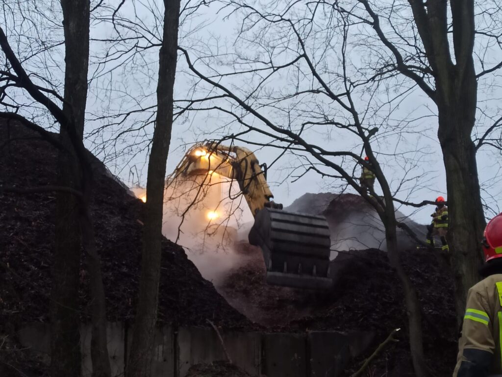 Do zdarzenia doszło tuż przed godziną 13:00. Przybyłe na miejsce jednostki straży zastały pożar, który obejmował ok. 100 m2 składowiska biomasy. Po dotarciu do miejsca pożaru strażacy przystąpili do działań. Podali prądy gaśnicze na ogniska pożaru oraz wykorzystali pobliską rzekę do zasilenia w wodę. W miarę przybywania na miejsce zdarzenia kolejnych jednostek straży pożarnej ilość prądów gaśniczych zwiększała się. Właściciel obiektu udostępnił strażakom ciężki sprzęt, w postaci koparek i ładowarek wraz z obsługą aby można było dotrzeć do ukrytych w składowisku zarzewi ognia. Po zakończonych działaniach hałdę dokładnie sprawdzono kamerami termowizyjnymi.