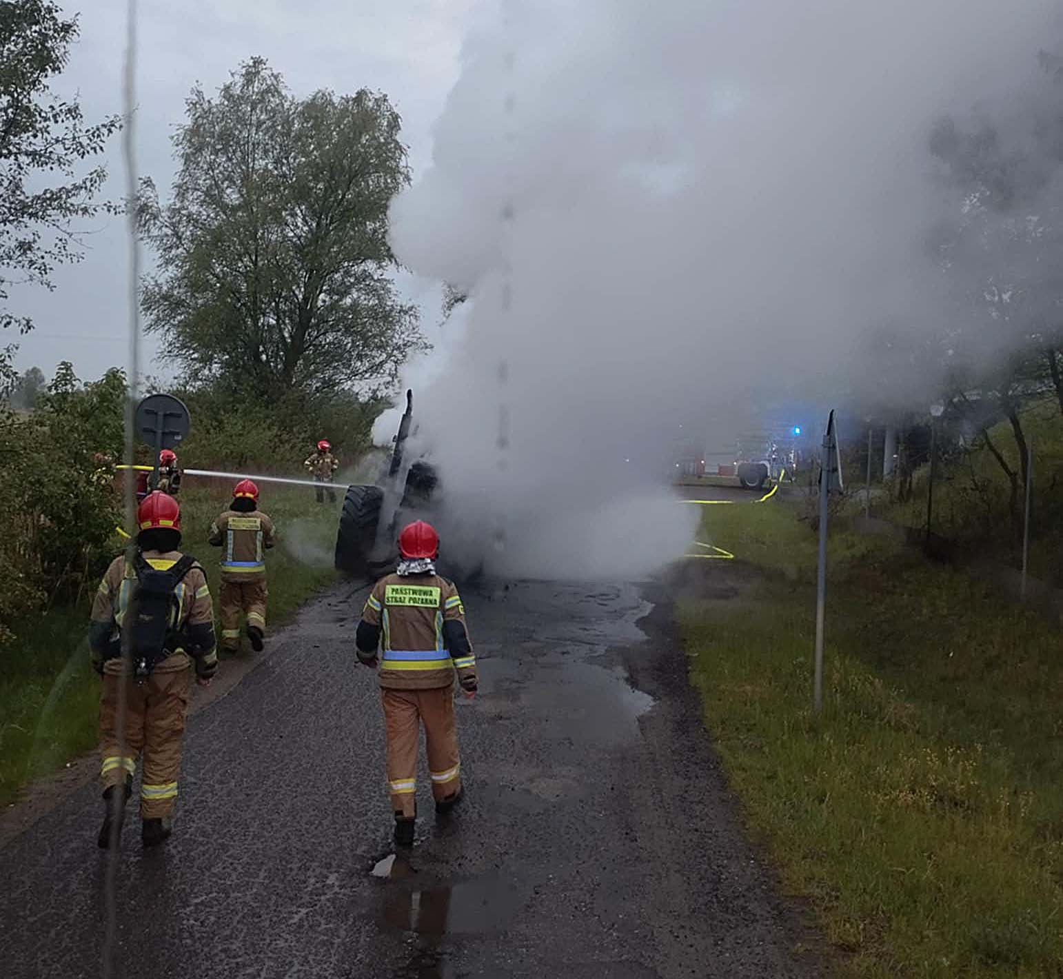 W miejscowości Stary Dybów (powiat wołomiński) doszło do groźnego pożaru ciągnika rolniczego. Na miejsce natychmiast zadysponowano siły ratownicze, w tym zastęp Państwowej Straży Pożarnej z Wołomina oraz dwa zastępy Ochotniczej Straży Pożarnej z Radzymina.