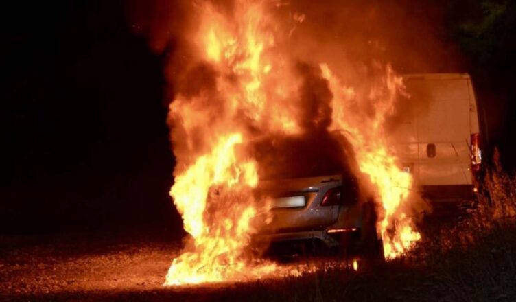 W środę 14 czerwca tuż po północy na osiedlu domów jednorodzinnych przy ulicy Szymanowskiego w Markach doszło do pożaru samochodu marki Mercedes ML zaparkowanego przy ogrodzeniu posesji. Luksusowe auto błyskawicznie stanęło w płomieniach. Słup ognia unosił się na kilka metrów.