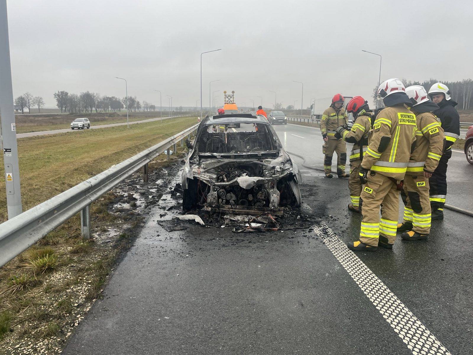Pożar osobówki na S61