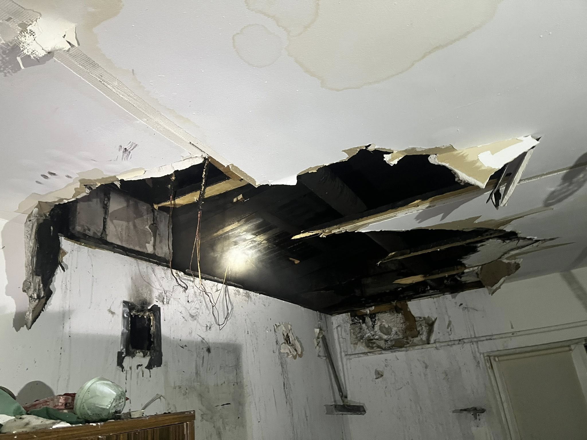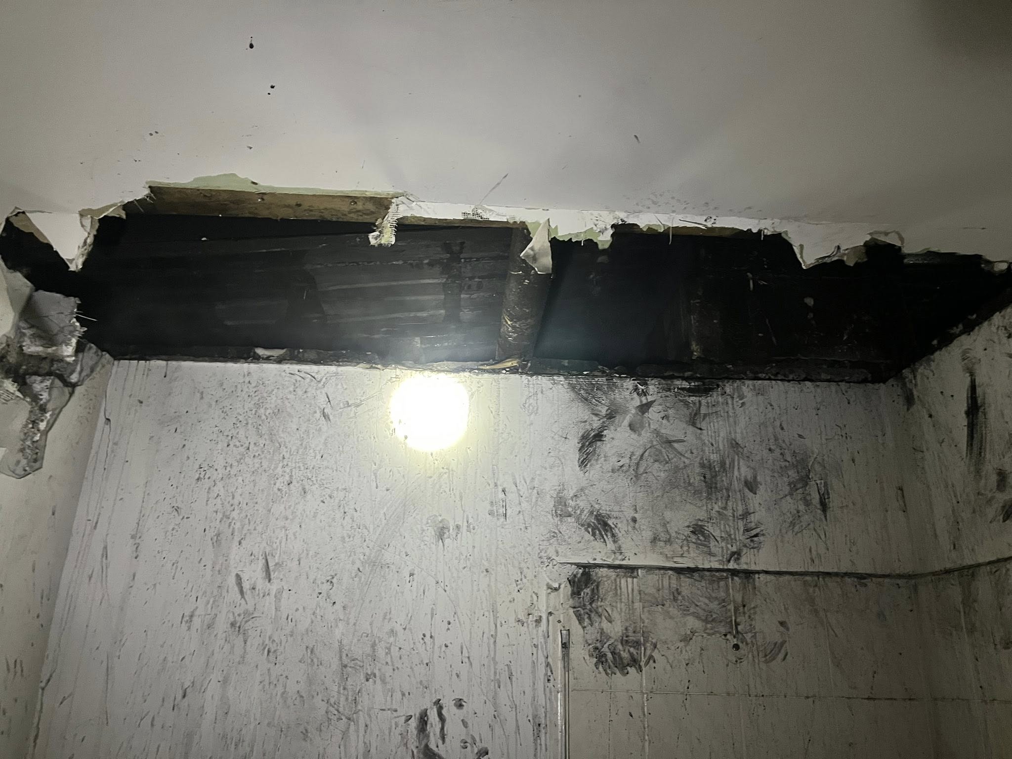 Z wnętrza budynku unosił się gryzący dym, a wysokie temperatury doprowadziły do uszkodzenia konstrukcji dachu i sufitu. Widoczne na miejscu nadpalone elementy drewniane, zerwany fragment poszycia oraz osmalone ściany i urządzenia grzewcze świadczyły o intensywności zdarzenia i dużej dynamice rozwoju pożaru.