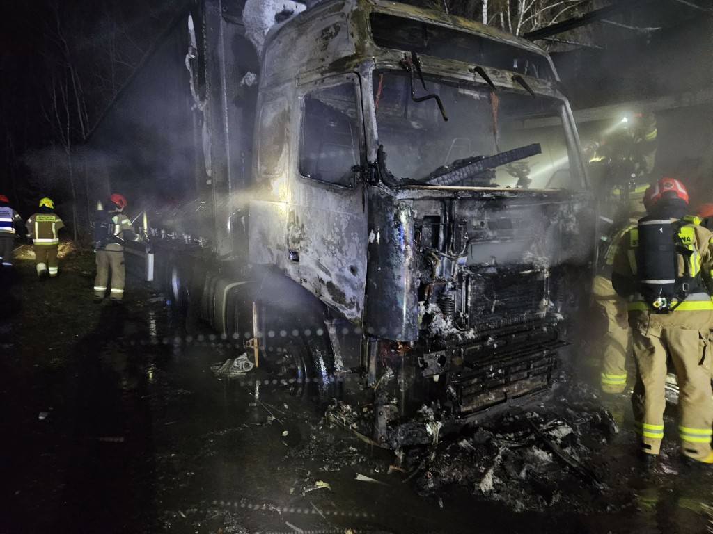 Po przybyciu pierwszych zastępów zastano ciągnik siodłowy całkowicie objęty ogniem. Dodatkowym zagrożeniem był drugi zestaw ciężarowy zaparkowany w bezpośrednim sąsiedztwie, który mógł ulec zapaleniu w wyniku rozprzestrzenienia się pożaru. Strażacy w pierwszej kolejności zabezpieczyli miejsce zdarzenia, wyznaczyli strefę niebezpieczną oraz przystąpili do działań gaśniczych.