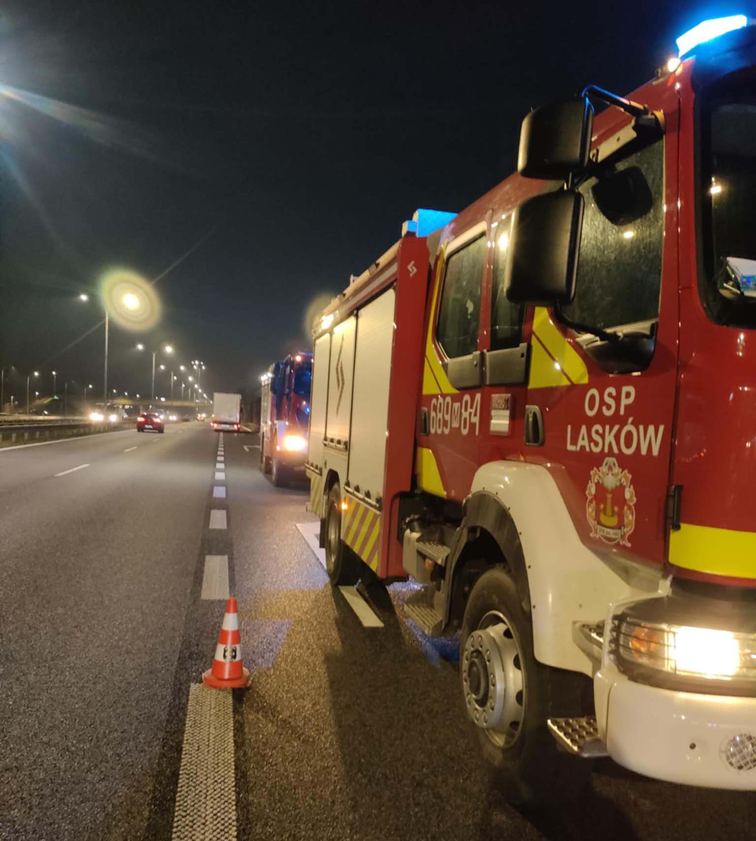 Do akcji zadysponowano jednostki JRG Wołomin z posterunku w Tłuszczu oraz Ochotniczą Straż Pożarną w Laskowie. Strażacy dotarli na miejsce zdarzenia, zabezpieczyli obszar i szybko przystąpili do gaszenia płonącego pojazdu. W wyniku zdarzenia nikt nie odniósł obrażeń, a strażacy skutecznie zneutralizowali zagrożenie dla innych użytkowników drogi.