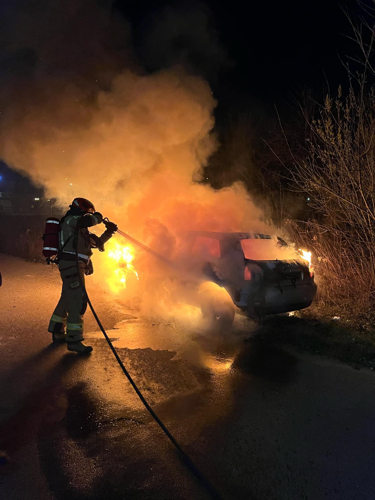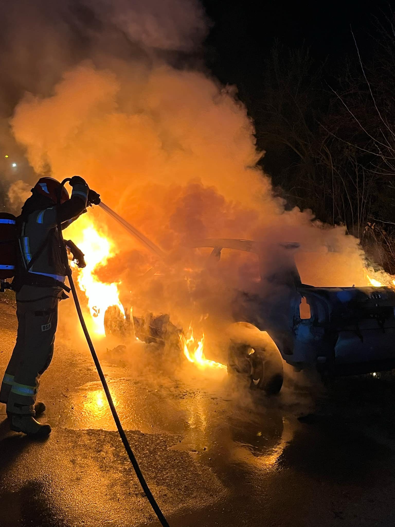 Strażacy po przybyciu na miejsce zdarzenia zastali pojazd w całości objęty ogniem. Dzięki sprawnej akcji pożar został szybko ugaszony, a dalsze zagrożenie wyeliminowane.