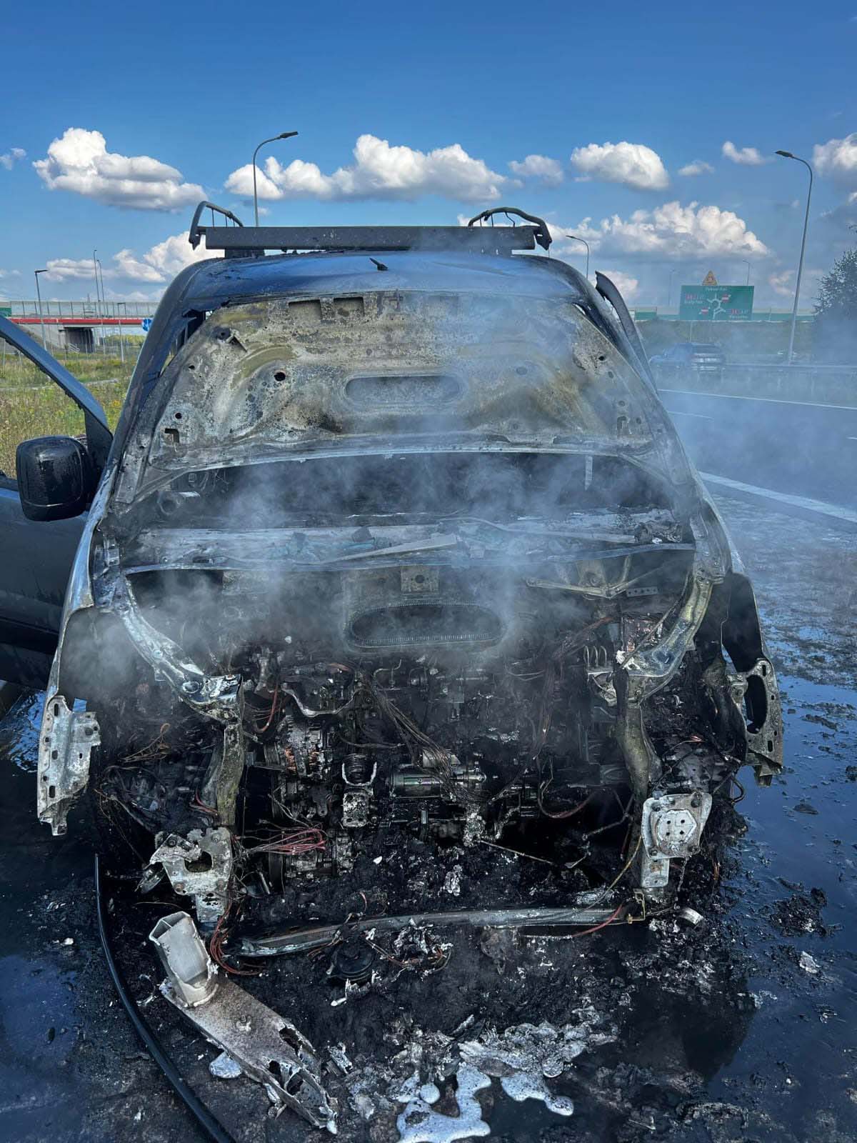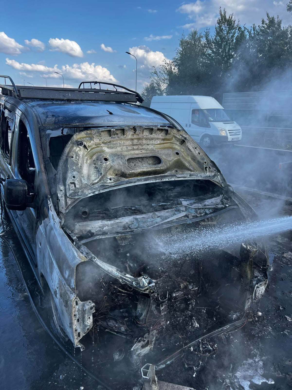 – Zgłoszenie dotarło do nas o godz. 16:57 – informuje rzecznik Państwowej Straży, mł. kpt. Jan Sobkow. – Po dojeździe na miejsce zdarzenia strażacy stwierdzili, że na poboczu drogi pali się samochód dostawczy. Działania polegały na zabezpieczeniu miejsca zdarzenia oraz podaniu wody na palący się pojazd do ugaszenia. Działania prowadzili aż do 17:44.