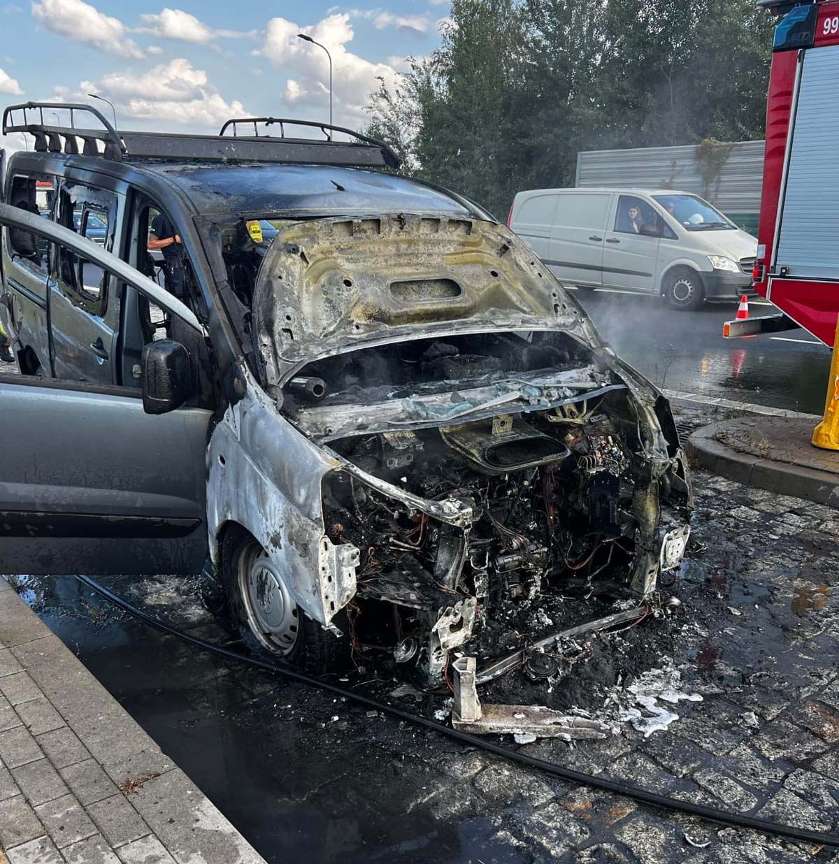 7 sierpnia w Radzyminie samochód dostawczy uległ poważnym zniszczeniom w wyniku pożaru.