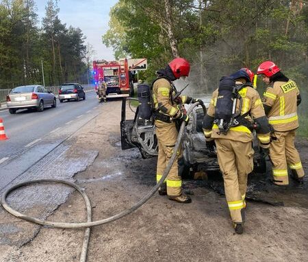 Samochody płoną tylko w filmach? To nieprawda. Pożar samochodu osobowego w Zielonce był tragiczny w skutkach dla Fiata Pandy.