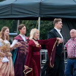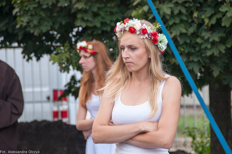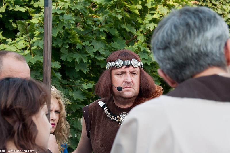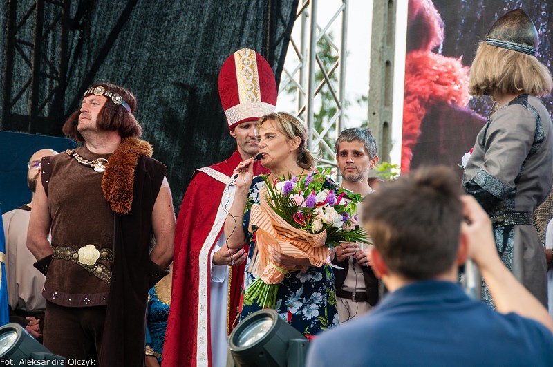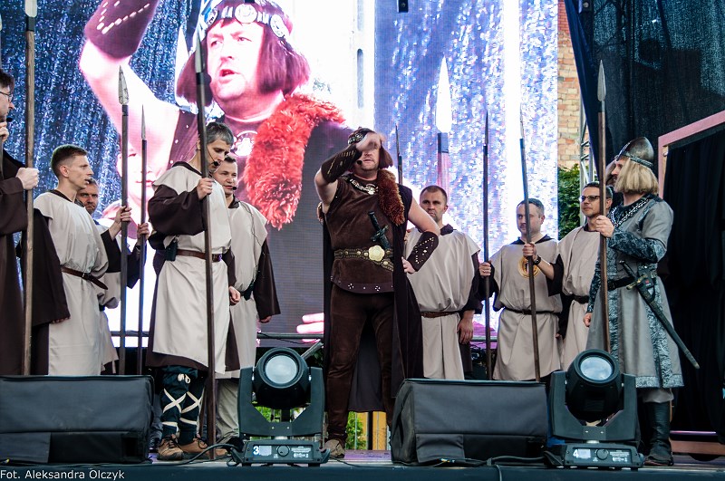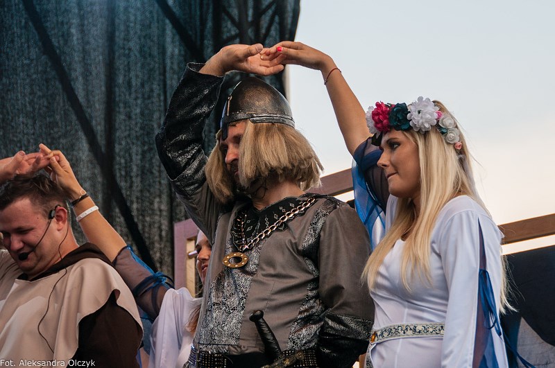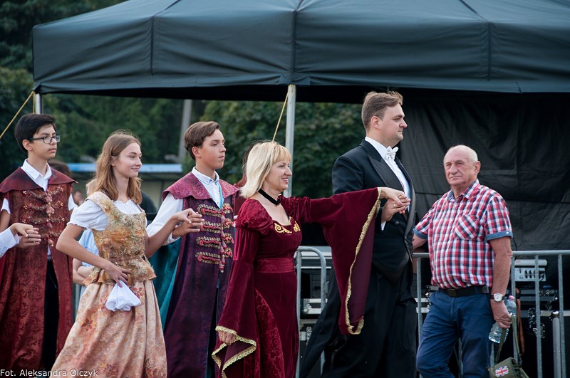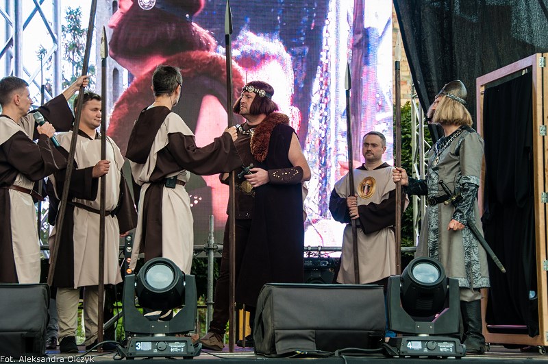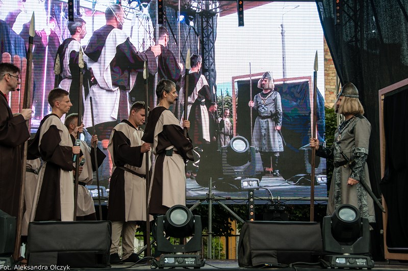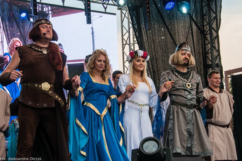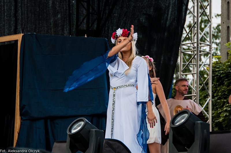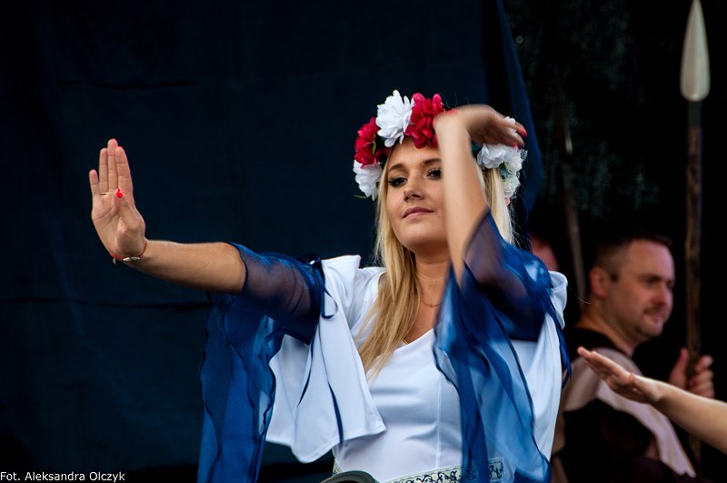 Kilka minut po godzinie 16 mieszkańcy Ząbek odtańczyli Poloneza. Taneczną kolumnę poprowadził Daniel Kołodziejczyk w parze z Małgorzatą Zyśk, wice burmistrz Ząbek. Barwny korowód tancerzy w pięknych strojach stanowił preludium do części patriotycznej sobotniego eventu – inscenizacji historycznej zatytułowanej. ?Chrzest Polski?, której reżyserem jest Anna Kozioł, a aktorami mieszkańcy Ząbek. Na scenie wystąpili m.in. radni Grzegorz Siwek i Artur Wałachowski, który wcieli się w rolę biskupa. Na scenie w roli brata Mieszka I wystąpił też Robert Perkowski, burmistrz Ząbek. Profesjonalizm artystów i ich zaangażowanie publiczność nagrodziła gromkimi brawami.