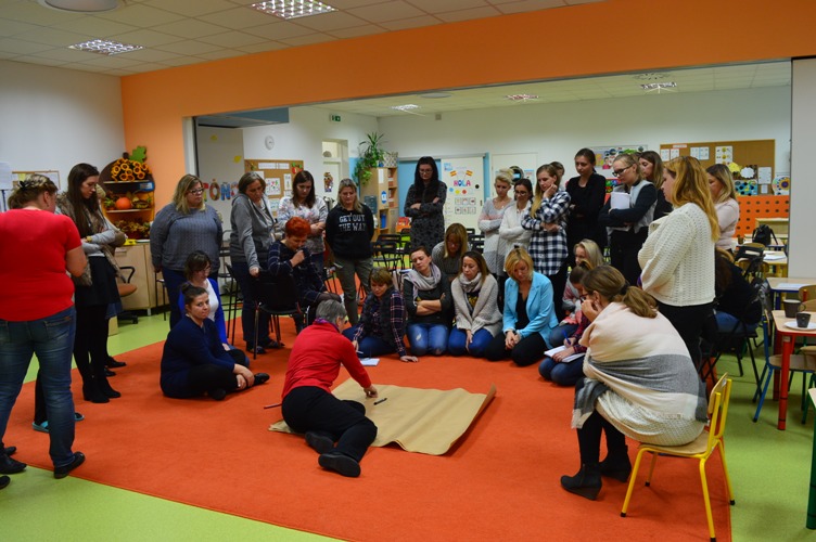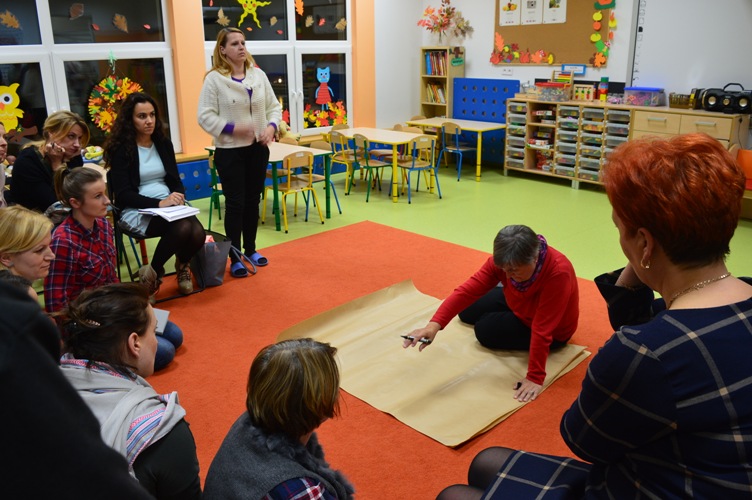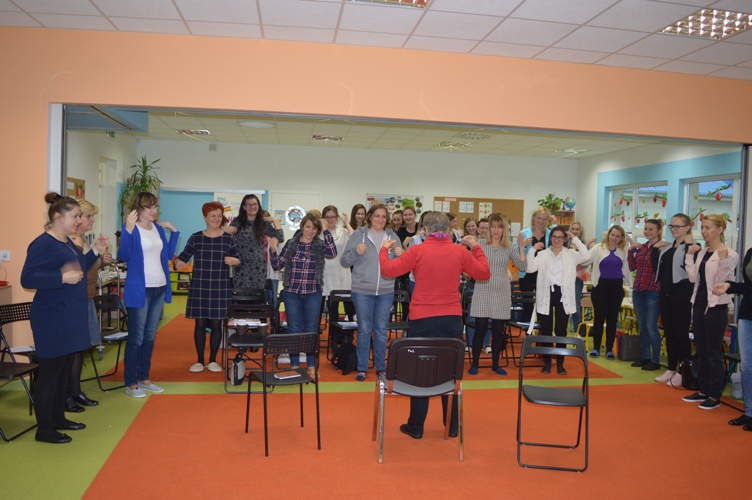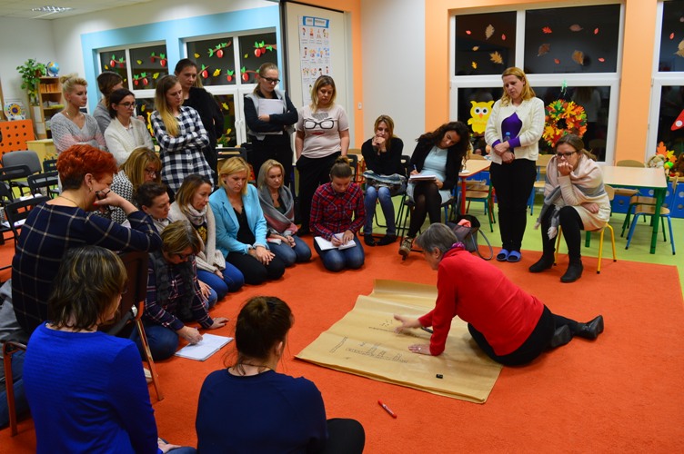 Podczas wielogodzinnych spotkań warsztatowych w dniach 26,27 i 28 października 2017 r. dr Ewa Zielińska z ogromną pasją i zaangażowaniem przekazała nam swoją wiedzę i doświadczenie. Dzięki niej nauczycielki z radzymińskich przedszkoli, mogły skutecznie i efektywnie podnieść kwalifikacje i wzbogacić swoją wiedzę. Inicjatorkami tychże cennych spotkań były Beata Sulejewska, dyrektor Przedszkola ?Kraina Przedszkolaka? i Magdalena Jarzębska-Kopka, dyrektor Przedszkola nr 2 w Radzyminie.