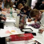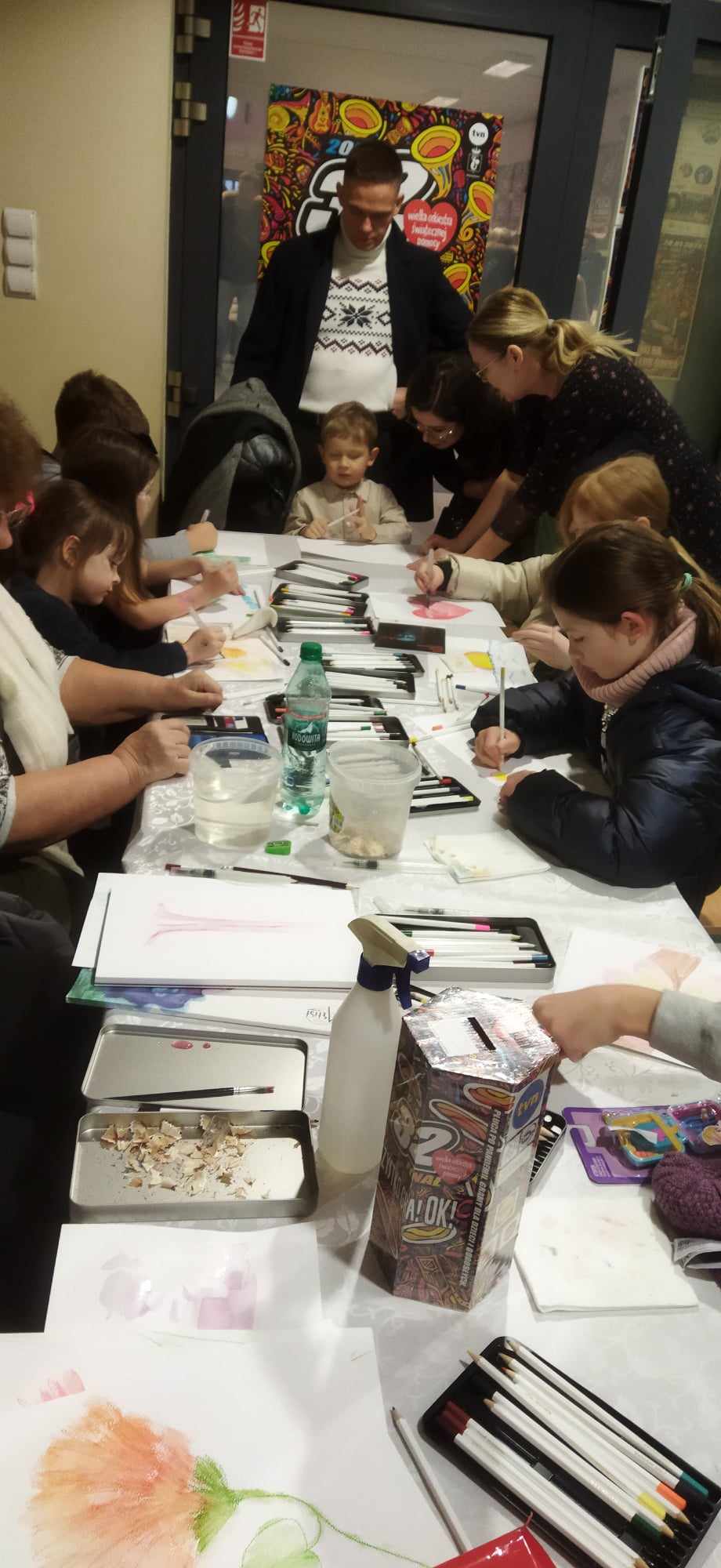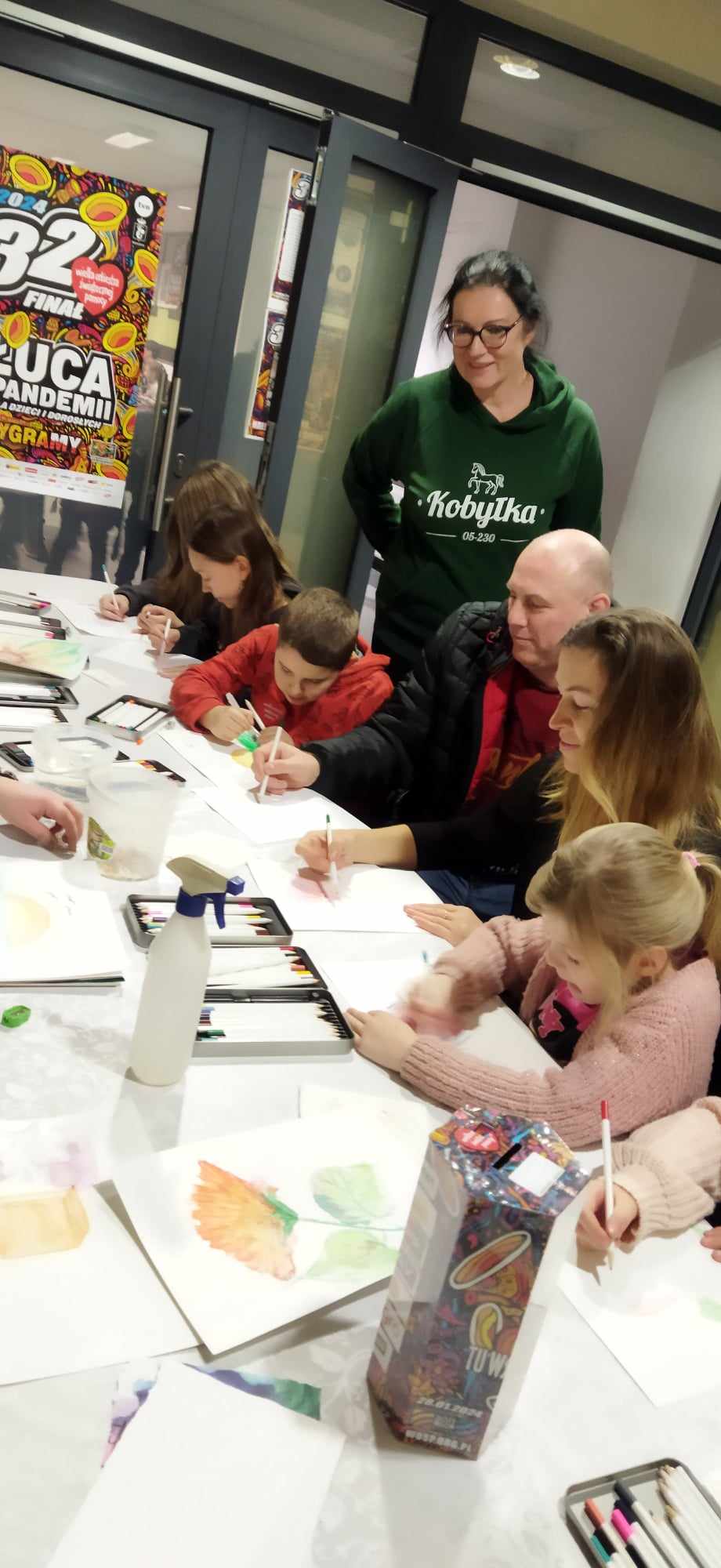 Dziś mogę dokonać małego podsumowania naszego udziału w tegorocznej akcji WOŚP. Nasza PAW od kilku lat w miarę systematycznie swoje zaangażowanie koncentruje na wsparciu kobyłkowskiego sztabu. Prowadzimy warsztaty artystyczne, przekazujemy wykonane przez nas dzieła. W tym roku cztery z nas: Asia, Gabrysia, Kasia i ja – Teresa prowadziłyśmy warsztaty plastyczne z których skorzystało 120 – 140 osób – dzieci i ich opiekunów. Wystarczyły kredki akwarelowe, wodne pędzelki, woda i odpowiedni papier i niektórym trudno było się oderwać od innego niż na co dzień rysowania. Z pewnością atrakcyjność naszego artystycznego kącika podnosiła możliwość wykonania zdjęcia w stroju Napoleona lub Marysieński – dziękuję Asi za przygotowanie monideł z wizerunkiem tych postaci. W czasie finału ze sceny wylicytowana została unikalna wycinanka Gabrysi a na licytacje w aukcjach na allego powędrował mój (Teresy) obrazek i vouczer na portret w wykonaniu Asi. Przy okazji było wiele ciekawych rozmów, nawiązanie nowych znajomości ale również ciekawe spotkani po latach. W tym roku nasza akcja zasiliła sztab WOŚP Kobyłka kwotą 1520 zł. – podsumowała Teresa Urbanowska z Pracowni Artystycznych Wyzwań.