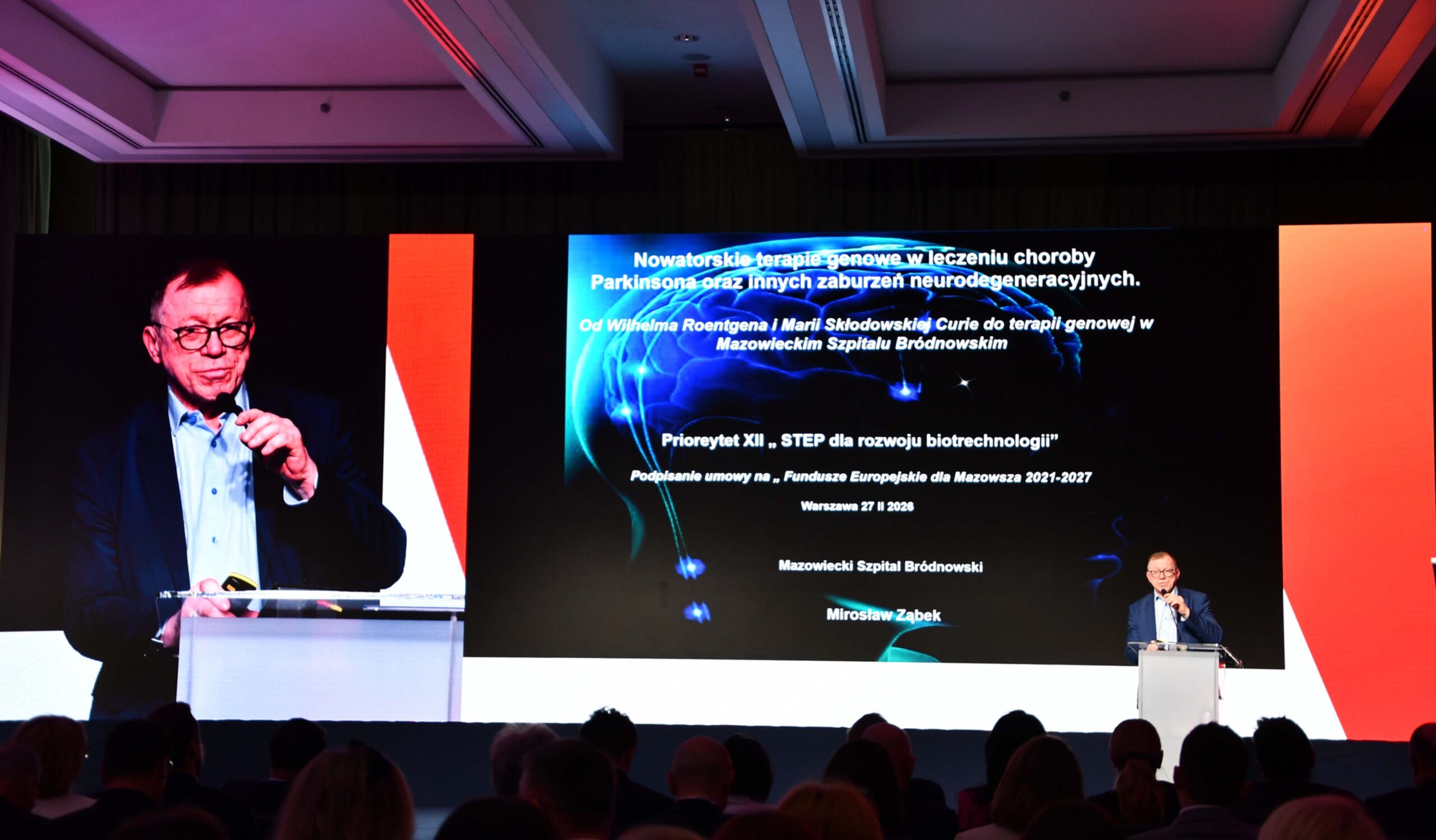 Mazowiecki Szpital Bródnowski otrzymał prawie 140 mln zł unijnego wsparcia na rozwój pionierskiej metody leczenia chorób mózgu. To pierwszy w Polsce tak zaawansowany projekt z wykorzystaniem terapii genowej dający realną szansę na przełom w leczeniu m.in. choroby Parkinsona. Badania będzie prowadzić zespół prof. Mirosława Ząbka.