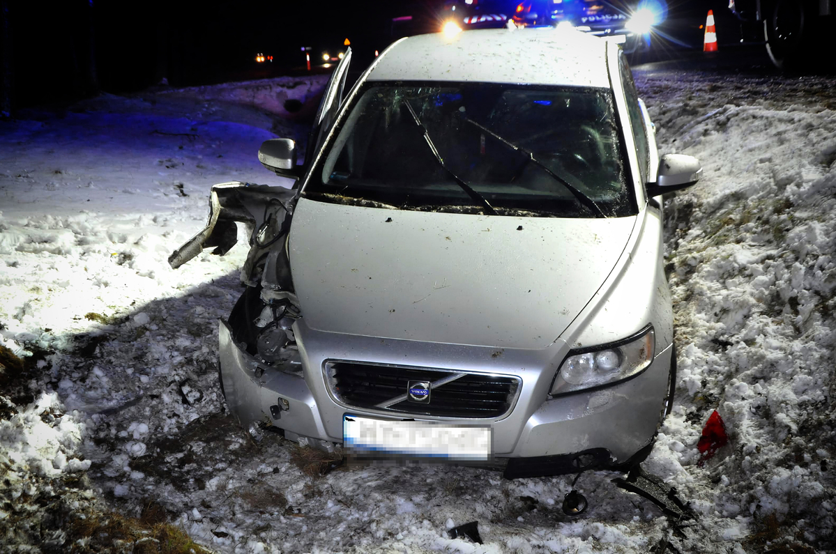 Jak wstępnie ustalili mundurowi, kierujący osobowym Volvo nie dostosował prędkości do warunków panujących na drodze i uderzył w tył poprzedzającego go BMW, za kierownicą którego siedział 45‑latek. W wyniku zderzenia auta zjechały do przydrożnego rowu, a Volvo dachowało. Na szczęście uczestnicy zdarzenia nie odnieśli obrażeń. Volvo podróżowali mężczyzna (50 lat) i kobieta (30 lat) – oboje kompletnie pijani. Badanie alkomatem wykazało w ich organizmach około 2 promili alkoholu. Jakby tego było mało, próbowali wmówić policjantom, że za kierownicą siedziała „nieznana im trzecia osoba”, która oddaliła się z miejsca zdarzenia.