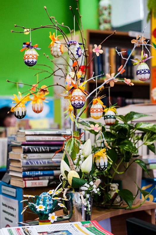 Świąteczny wystrój pojawił się również w Miejskiej Bibliotece Publicznej w Ząbkach, przedszkolach i szkołach. Wykonane przez dzieci pisanki to doskonała ozdoba świątecznego koszyczka.