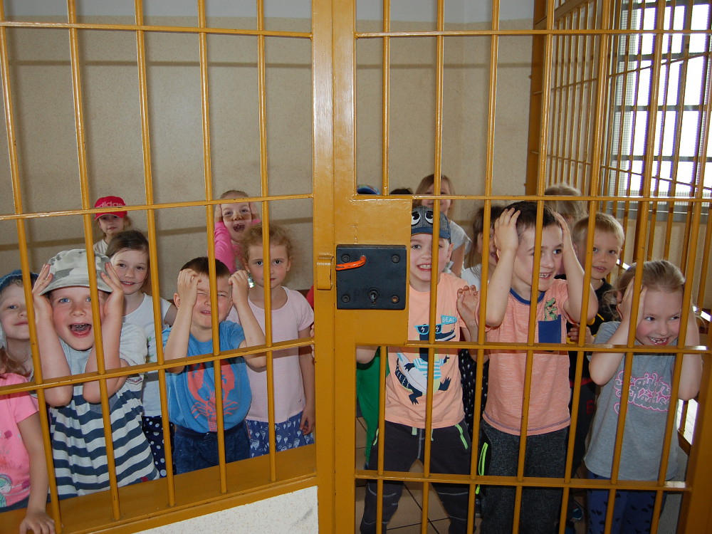 Kolejnym punktem ?małej wycieczki? była policyjny „areszt? ? oczywiście z tej dobrej strony choć przez chwilę zostały ?zamknięte? za kratami. Po wyjściu ?na wolność? każde stwierdziło, że pobyt w takim ?pokoju? to nic przyjemnego. Oficer prasowy wołomińskiej Komendy asp. szt. Tomasz Sitek, który zorganizował wycieczkę zaprezentował dzieciom radiowóz, a nasi mali goście mogli w nim usiąść i choć przez chwilę poczuć się jak prawdziwy policjant.