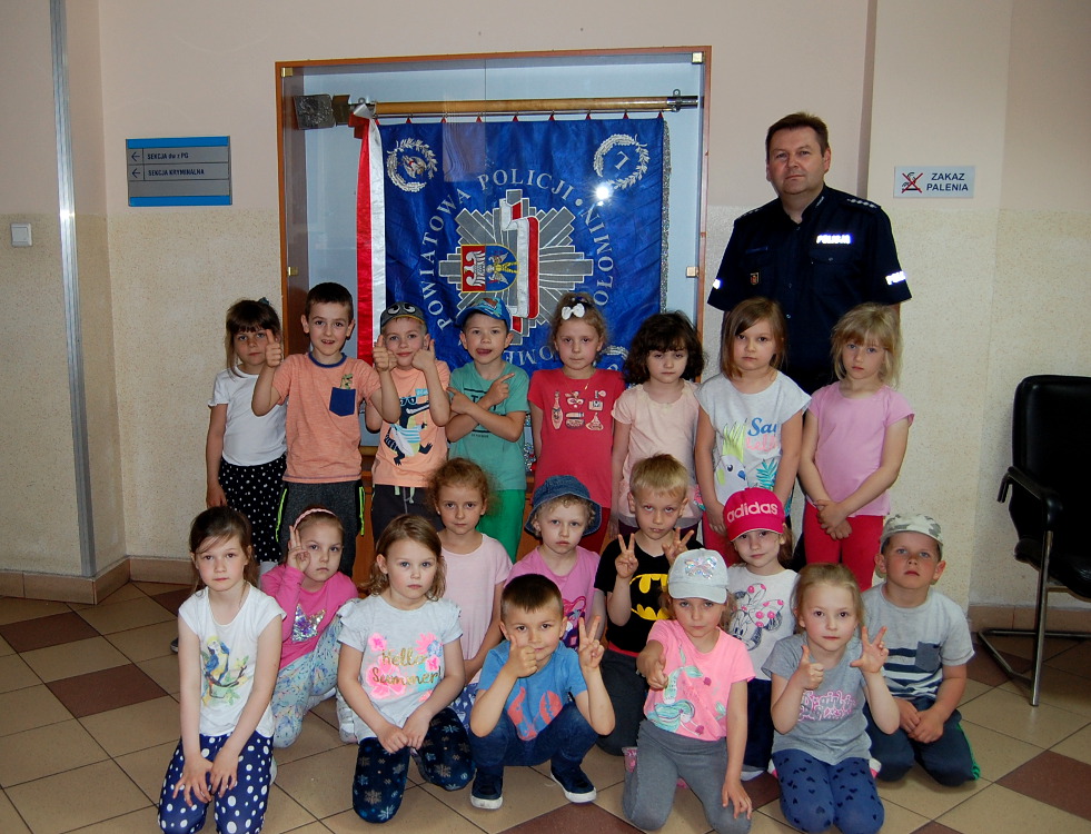 Dzieci podczas tej niedługiej, ale intensywnej i pełnej atrakcji wycieczki dowiedziały się sporo o pracy policjantów, o tym, że są dla nich i są zawsze gotowi na każde wezwanie osób potrzebujących pomocy. O tym, że są ich przyjaciółmi. Na koniec wszystkie dzieci otrzymały odblaski oraz pozowały do pamiątkowego zdjęcia.