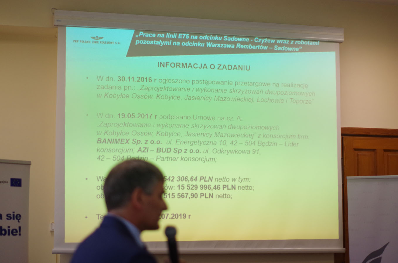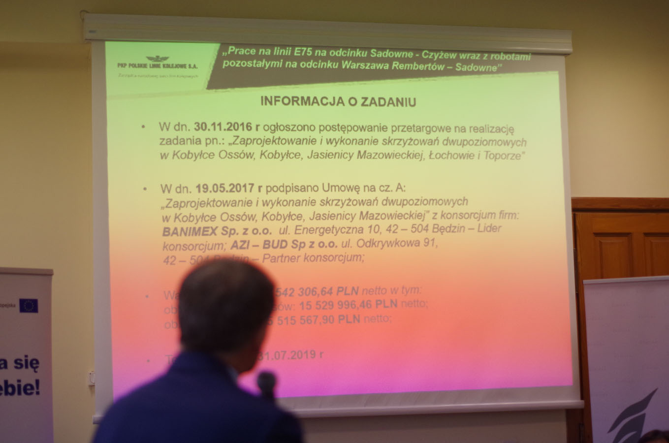 Zaś reprezentujący inwestora Krzysztof Pietras stwierdził: – Na chwilę obecną wiadomo, że wyremontowany został odcinek od Warszawy do stacji Sadowne (bez przystanku w tej miejscowości). Zostało do zrealizowania jeszcze kilka dwupoziomowych przejazdów w tym również te dwa w podwarszawskiej Kobyłce. 30 listopada 2016 roku ogłosiliśmy przetarg na oba dwupoziomowe skrzyżowania w Kobyłce. W dniu 19 maja bieżącego roku podpisana została umowa na realizację zadania na kwotę ponad 34 miliony zł. Z czego ponad 70% pochodzi z dofinansowania unijnego. Wybrane i zaakceptowane rozwiązania w Kobyłce to wiadukt w Kobyłce-Ossowie i tunel w Kobyłce. Mam nadzieję, że pan burmistrz stanie na wysokości zadania i realizacja powiązanych z naszą inwestycją dojazdów na terenie Kobyłki wpisze się w naszą koncepcję ? powiedział podczas krótkiej konferencji prasowej, jak odbyła się w minioną środę (11 października) w Kobyłce.