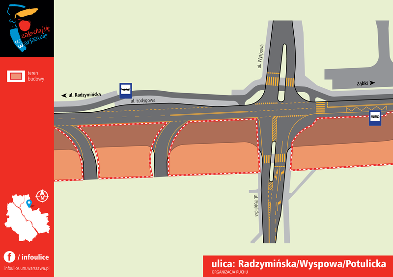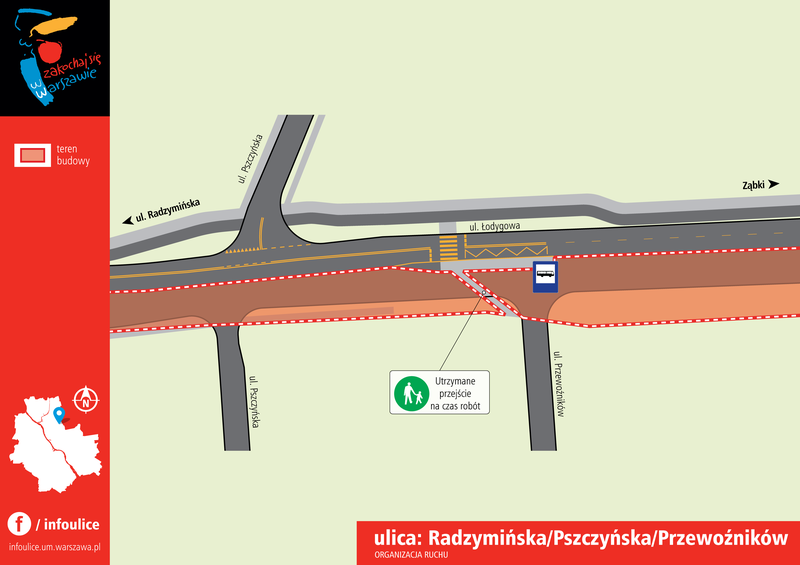 Na odcinku od ul. Radzymińskiej do ul. Wolińskiej ruch zostanie skierowany na nowo wybudowaną jezdnię północną, a istniejąca jezdnia zostanie wyłączona z ruchu i rozpocznie się jej przebudowa. Nie będzie możliwy wyjazd na ul. Łodygową z ul. Pszczyńskiej po stronie południowej oraz ulic: Przewoźników i Wschodniej. Przejezdne będzie skrzyżowanie z ulicami: Wyspową i Potulicką.