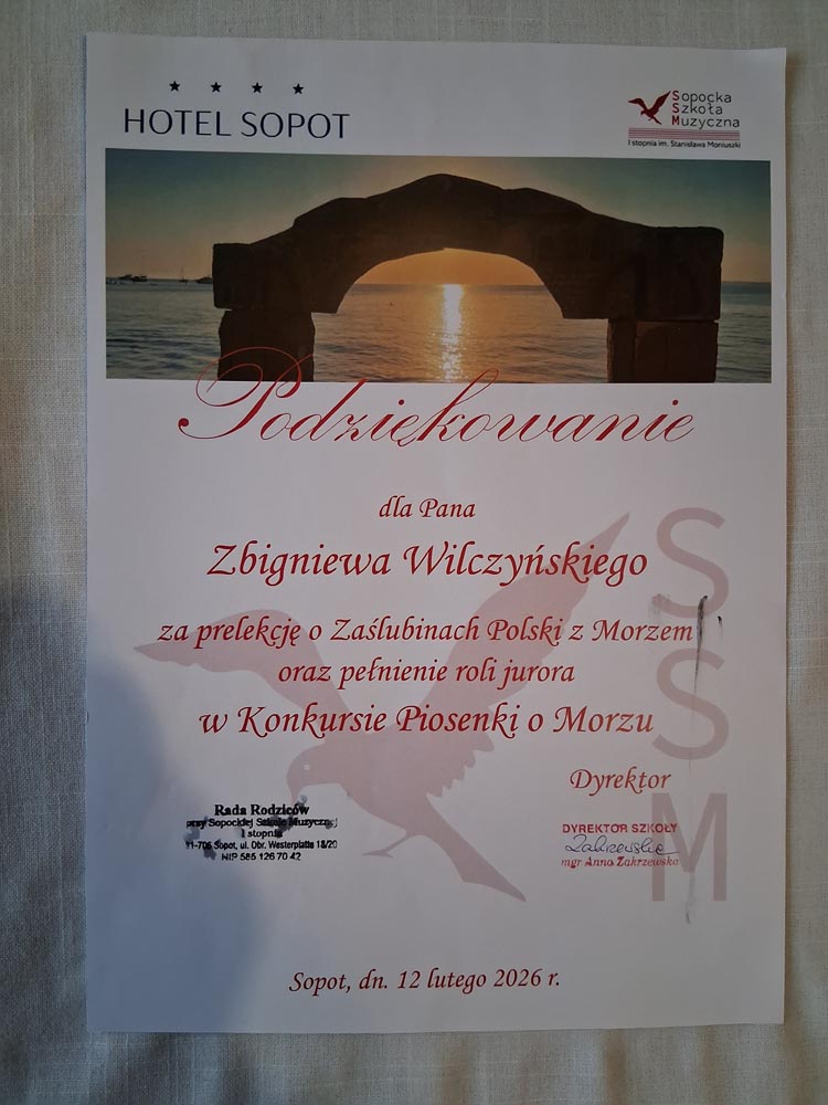 Dziękuję całej społeczności szkoły za zaproszenie, serdeczność i piękną organizację wydarzenia. Takie chwile przypominają, że muzyka potrafi łączyć ludzi równie mocno jak wspólna historia, a morze – choć nie zawsze widoczne – może być obecne w sercu każdego z nas.