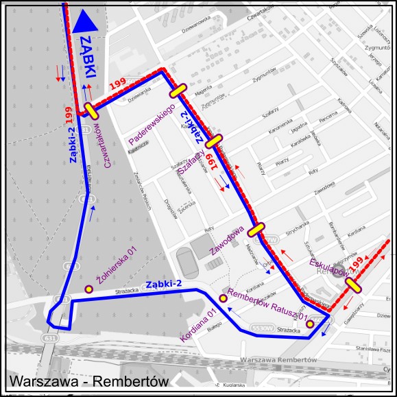 Przywrócenie stałej trasy linii 153, 199, 225, N24 i Ząbki-2/2M w Rembertowie