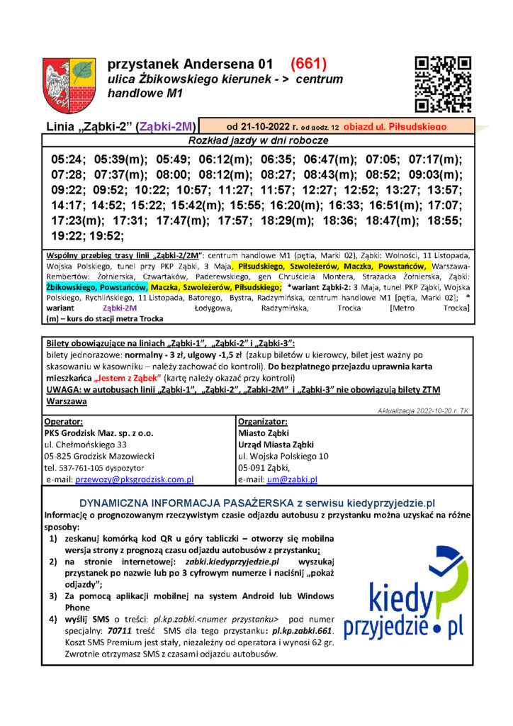 Od dnia 21 października (piątek) od godziny 12 zmieni się trasa linii Ząbki-2/2M w kierunku CH Marki i Metra Trocka .