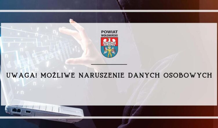 Starostwo Powiatowe w Wołominie (dalej Starostwo), zgodnie z art. 34 ust. 1 Rozporządzenia Parlamentu Europejskiego i Rady (UE) 2016/679 z dnia 27 kwietnia 2016 r. w sprawie ochrony osób fizycznych w związku z przetwarzaniem danych osobowych i w sprawie swobodnego przepływu takich danych oraz uchylenia dyrektywy 95/46/WE (ogólne rozporządzenie o ochronie danych), informuje o naruszeniu ochrony danych osobowych, w związku z identyfikacją zdarzenia, polegającego na ataku złośliwego oprogramowania szyfrującego pliki, znajdujące się w infrastrukturze Węzła Regionalnego na poziomie Urzędu Marszałkowskiego Województwa Mazowieckiego (informacje Urzędu zawarto w komunikacie).