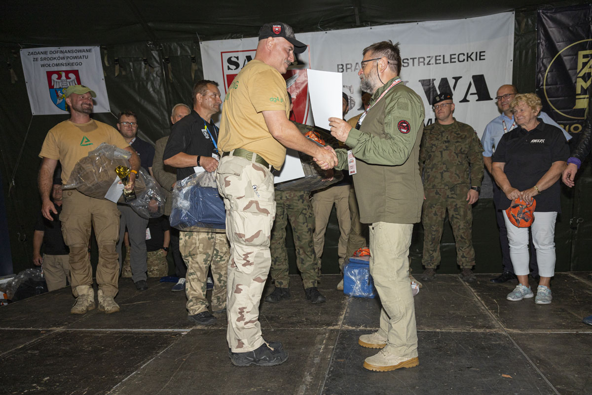 Wspaniale nagrody ufundowały firmy: Sellier & Bellot, Fabryka Broni ?Łucznik? Radom, Cenzin, Starostwo Powiatowe w Wołominie, Polska Grupa Zbrojeniowa, M.K Szuster, INCORSA, FAM Pionki, BRUNOX, sharg.pl, MTM Deweloper, kaliber.pl, TACTICAL 5.11, Delta Optical, Mazurski Raj, Promgaz, Steel Alive, WW Wiśniewscy, Konsterm hale stalowe, KOMODO, MBM Meat Food, Craft Aluminium, Rzutki Strzeleckie MR, PWiK Wołomin, MZO Wołomin, ZEC Wołomin, PK Wołomin, MDK Wołomin i OSiR ?Huragan? w Wołominie.