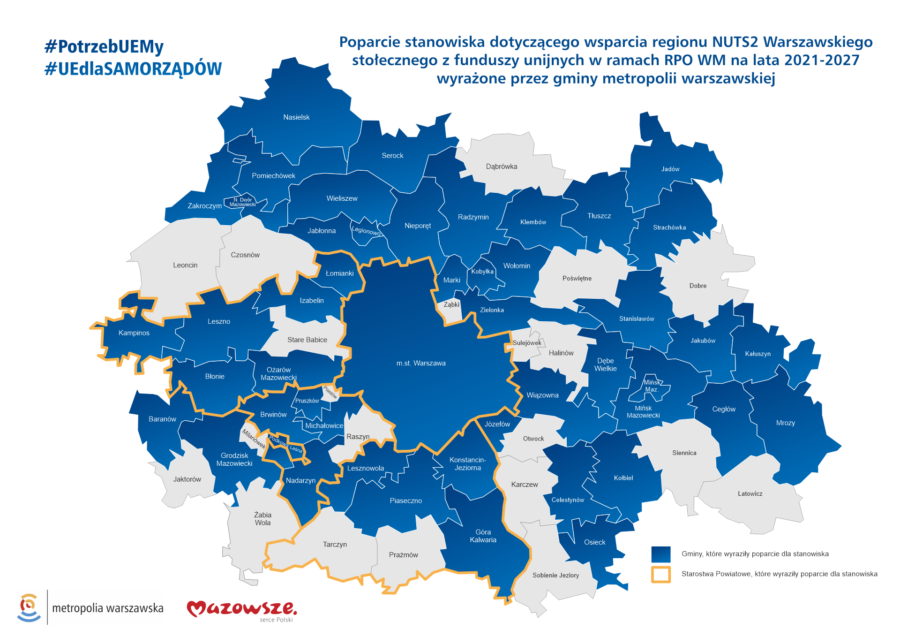 dostęp do środków unijnych dla Warszawy i 70 okolicznych gmin, zarówno na poziomie regionalnym jak i centralnym w ramach programów współfinansowanych z Regionalnego Programu Operacyjnego na lata 2021-2027 i Europejskiego Funduszu Społecznego Plus;