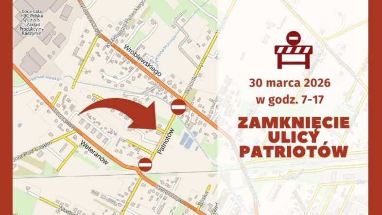 W poniedziałek, 30 marca, w godzinach 7:00–17:00, ulica Patriotów w Radzyminie będzie nieprzejezdna.
