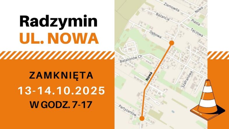 W godzinach 7:00–17:00 ulica Nowa na odcinkach, gdzie będą trwały prace, będzie zamknięta dla ruchu kołowego.