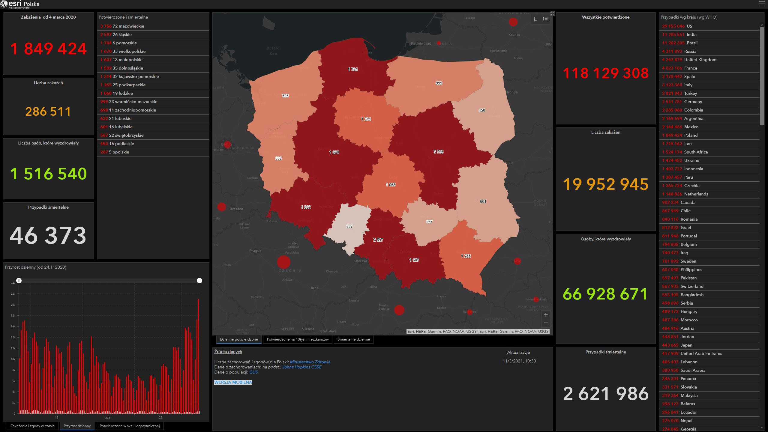 Dane są prezentowane od 27 grudnia 2020 do północy dnia poprzedzającego dzień publikacji. Dane pochodzą z platformy P1 obsługiwanej przez Centrum e-zdrowia oraz systemów Agencji Rezerw Materiałowych.