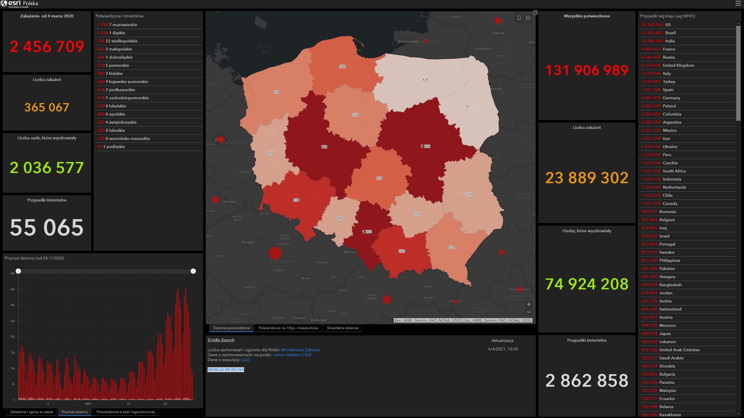 Dane są prezentowane od 27 grudnia 2020 do północy dnia poprzedzającego dzień publikacji. Dane pochodzą z platformy P1 obsługiwanej przez Centrum e-zdrowia oraz systemów Agencji Rezerw Materiałowych.