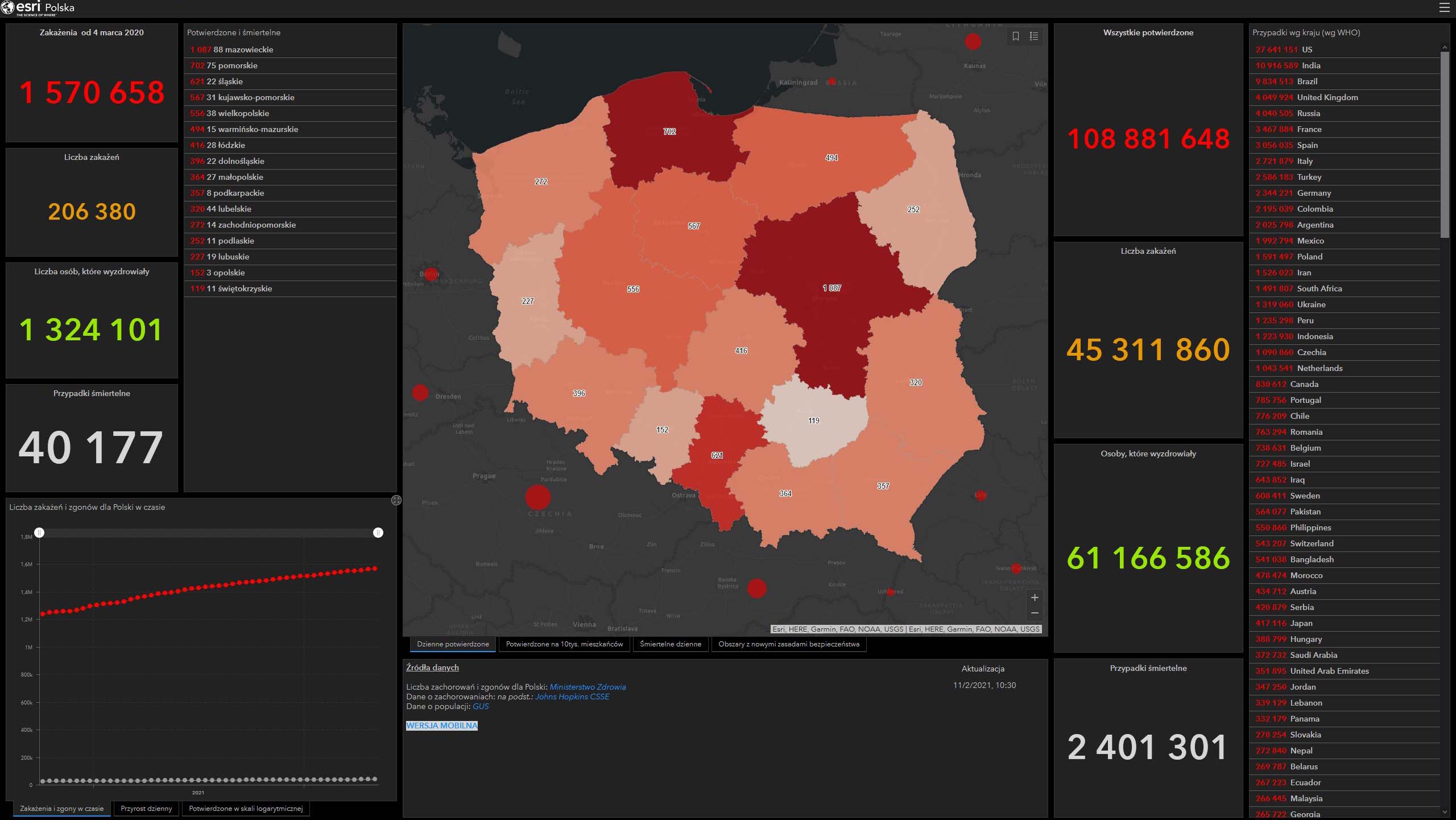 - Korekty ? w systemie raportowym, w indywidualnych przypadkach wyniki mogą zmienić się wstecznie na skutek wprowadzanych korekt. Korekty mogą dotyczyć również danych adresowych lub danych osobowych. Co za tym idzie, globalna liczba przypadków będzie wyliczana na każdy dzień od nowa, a zmiana tej wartości w określonym przedziale czasu może nie być równa sumie wszystkich nowych przypadków zaraportowanych w poszczególnych dniach tego okresu.