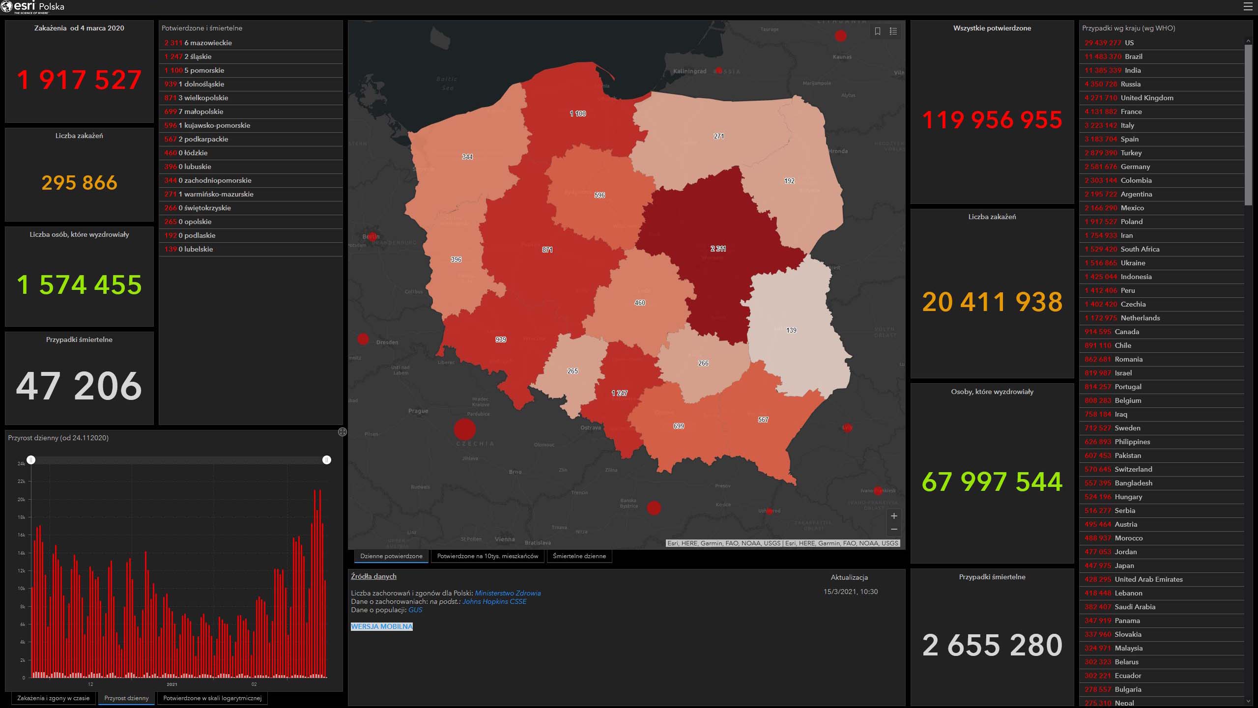 Dane są prezentowane od 27 grudnia 2020 do północy dnia poprzedzającego dzień publikacji. Dane pochodzą z platformy P1 obsługiwanej przez Centrum e-zdrowia oraz systemów Agencji Rezerw Materiałowych.