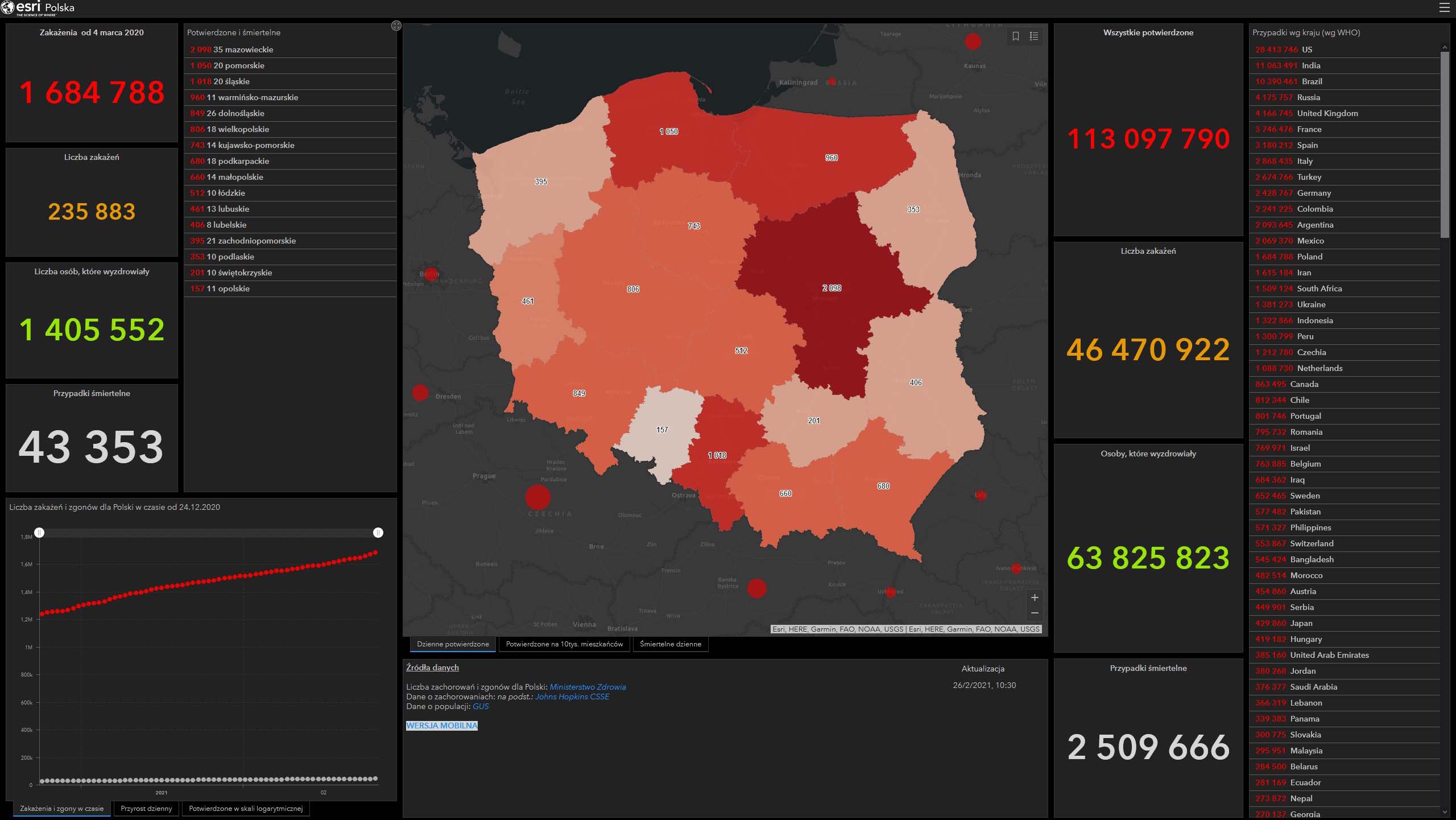 - Korekty ? w systemie raportowym, w indywidualnych przypadkach wyniki mogą zmienić się wstecznie na skutek wprowadzanych korekt. Korekty mogą dotyczyć również danych adresowych lub danych osobowych. Co za tym idzie, globalna liczba przypadków będzie wyliczana na każdy dzień od nowa, a zmiana tej wartości w określonym przedziale czasu może nie być równa sumie wszystkich nowych przypadków zaraportowanych w poszczególnych dniach tego okresu.